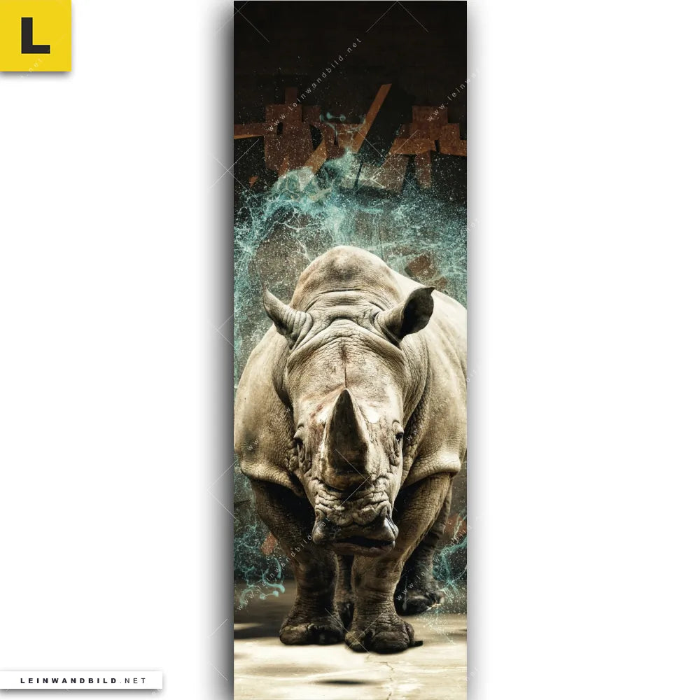 Du konfigurierst Dein individuelles Leinwandbild | Nashorn zerstört Wand | Schmal und wir produzieren es NEU für Dich. Unsere Tierwelt Leinwände sind KEINE Lagerware. Du bist Dir unsicher, welches Motiv oder Format das richtige für dein individuelles Keilrahmenbild ist, dann helfen wir dir gerne weiter und beraten dich!