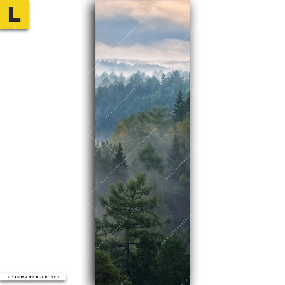 Du konfigurierst Dein individuelles Leinwandbild | Nebel im Wald | Schmal und wir produzieren es NEU für Dich. Unsere Landschaften, Wald - Bäume Leinwände sind KEINE Lagerware. Du bist Dir unsicher, welches Motiv oder Format das richtige für dein individuelles Keilrahmenbild ist, dann helfen wir dir gerne weiter und beraten dich!