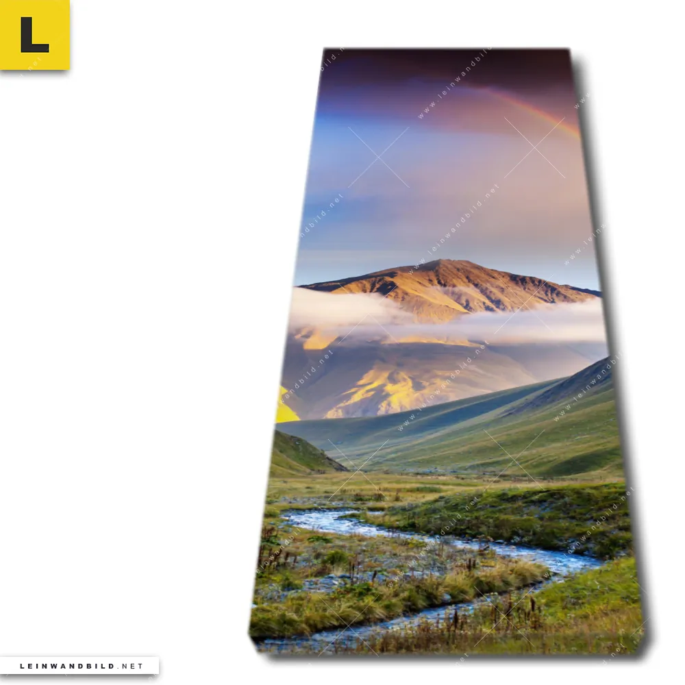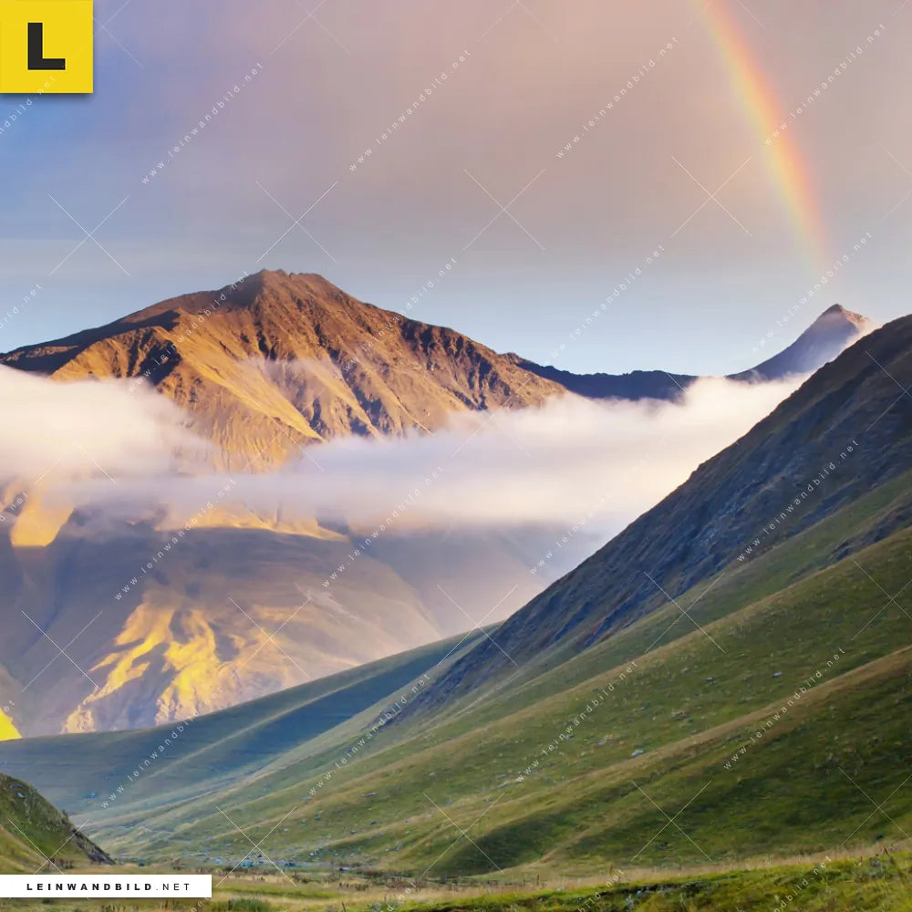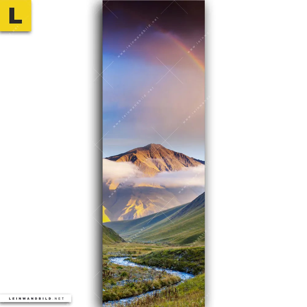 Du konfigurierst Dein individuelles Leinwandbild | Nebel und Regenbogen zwischen den Bergen | Schmal und wir produzieren es NEU für Dich. Unsere Landschaften Leinwände sind KEINE Lagerware. Du bist Dir unsicher, welches Motiv oder Format das richtige für dein individuelles Keilrahmenbild ist, dann helfen wir dir gerne weiter und beraten dich!