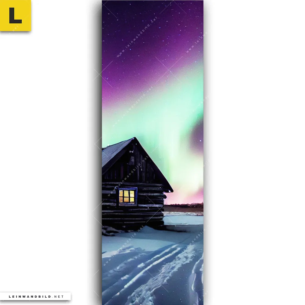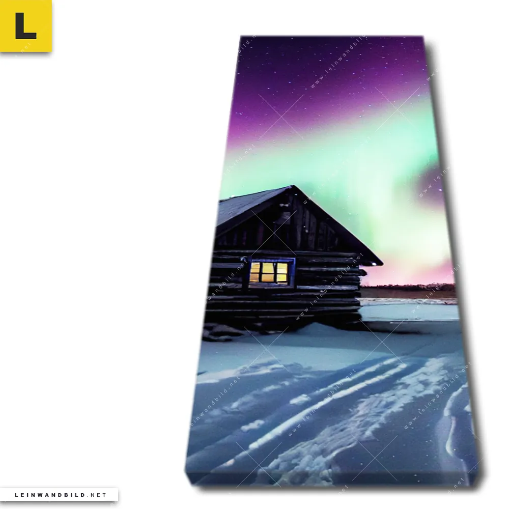 Du konfigurierst Dein individuelles Leinwandbild | Nordlichter über einem Holzhaus | Schmal und wir produzieren es NEU für Dich. Unsere Landschaften Leinwände sind KEINE Lagerware. Du bist Dir unsicher, welches Motiv oder Format das richtige für dein individuelles Keilrahmenbild ist, dann helfen wir dir gerne weiter und beraten dich!