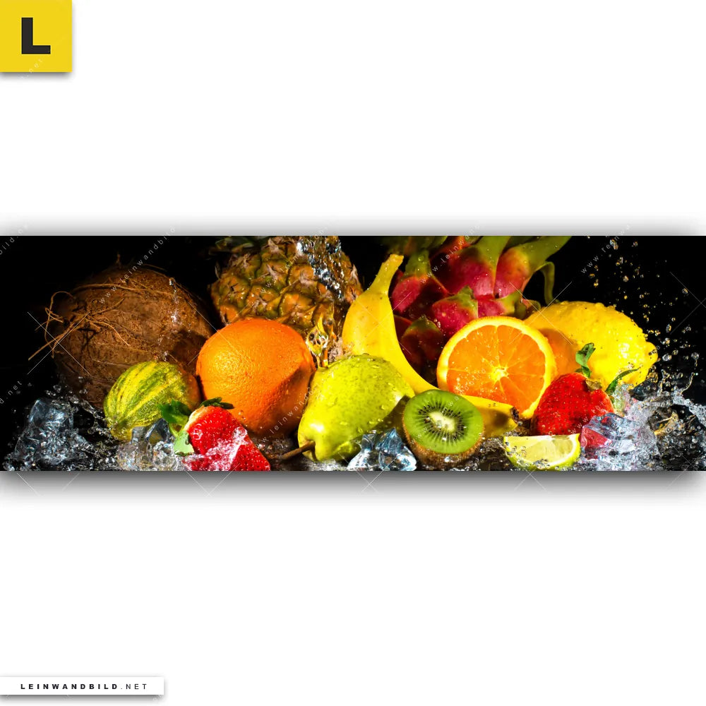 Du konfigurierst Dein individuelles Leinwandbild | Obst-in spritzendem Wasser | Panorama und wir produzieren es NEU für Dich. Unsere Essen - Trinken Leinwände sind KEINE Lagerware. Du bist Dir unsicher, welches Motiv oder Format das richtige für dein individuelles Keilrahmenbild ist, dann helfen wir dir gerne weiter und beraten dich!
