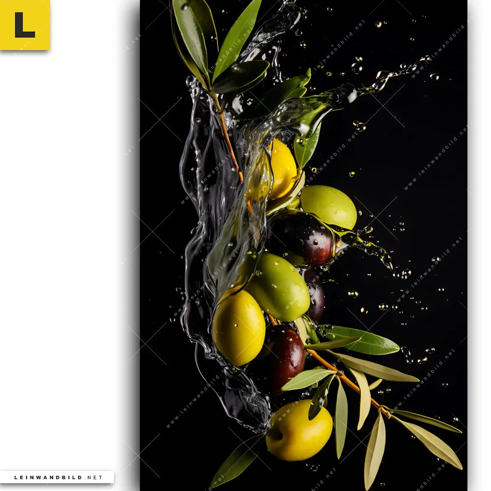 Du bist auf der Suche nach einem XXL Essen - Trinken Leinwandbild und Begriffe wie Wassersplash, Oliven, Küche, Lebensmittel, Essen, Gemüse haben Dich auf der Suche nach Deinem neuen Hochformat Wandbild auf Leinwand inspiriert? Farben wie Schwarz, Grün, Braun dürfen auf Deinem neuen vertikalen Keilrahmenbild nicht fehlen und Leinwände im Natürlich - Realistisch, Modern Art Stil passen perfekt zu Deinem Einrichtungsstil?