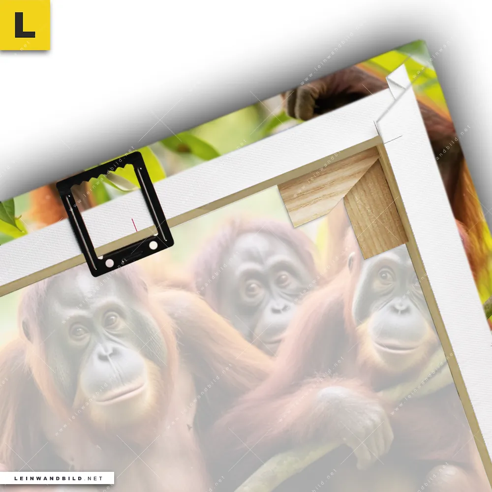 Du konfigurierst Dein individuelles Leinwandbild | Orang Utan Familie im Regenwald | Querformat und wir produzieren es NEU für Dich. Unsere Tierwelt Leinwände sind KEINE Lagerware. Du bist Dir unsicher, welches Motiv oder Format das richtige für dein individuelles Keilrahmenbild ist, dann helfen wir dir gerne weiter und beraten dich!