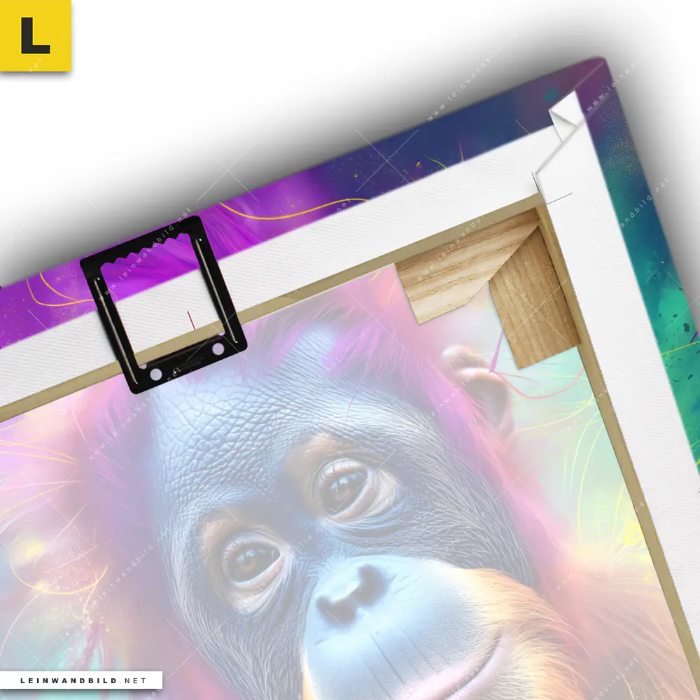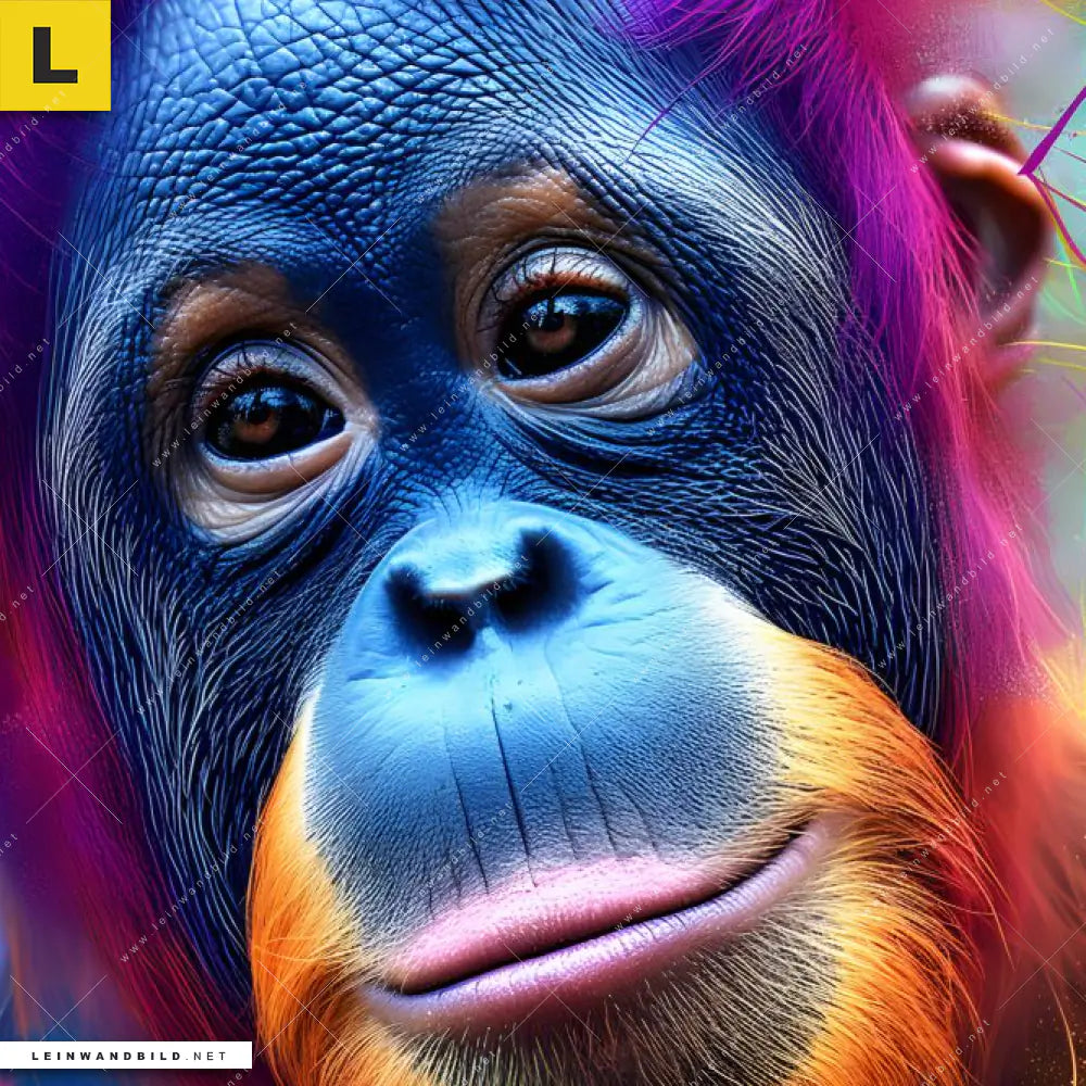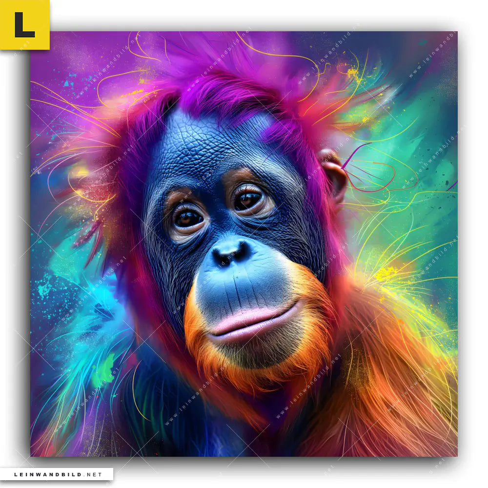 Du konfigurierst Dein individuelles Leinwandbild | Orang-Utan in Regenbogenfarben | Quadrat und wir produzieren es NEU für Dich. Unsere Tierwelt Leinwände sind KEINE Lagerware. Du bist Dir unsicher, welches Motiv oder Format das richtige für dein individuelles Keilrahmenbild ist, dann helfen wir dir gerne weiter und beraten dich!