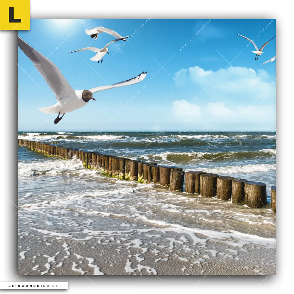 Du konfigurierst Dein individuelles Leinwandbild | Ostseeküste & Möwen | Quadrat und wir produzieren es NEU für Dich. Unsere Strand - Meer, Landschaften Leinwände sind KEINE Lagerware. Du bist Dir unsicher, welches Motiv oder Format das richtige für dein individuelles Keilrahmenbild ist, dann helfen wir dir gerne weiter und beraten dich!