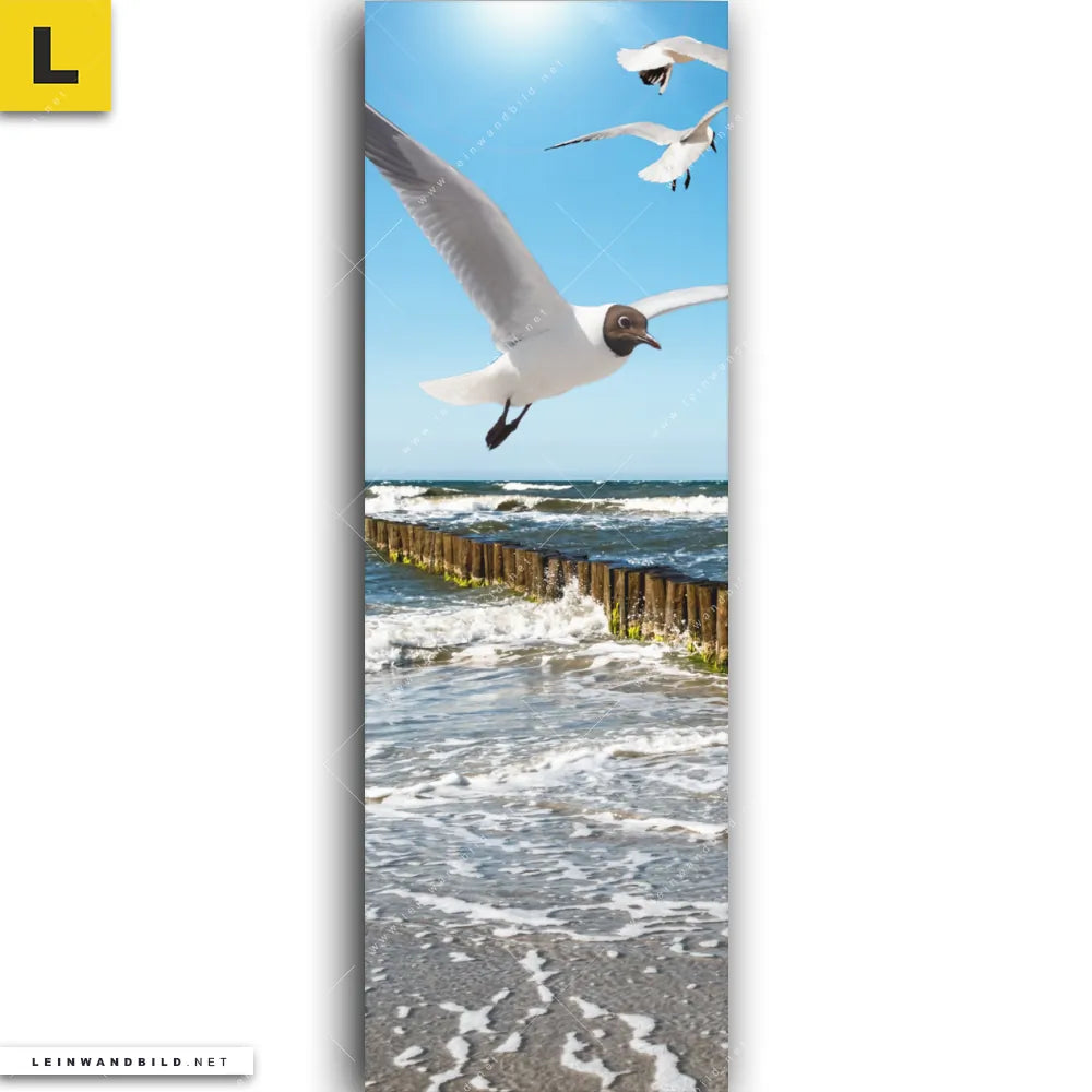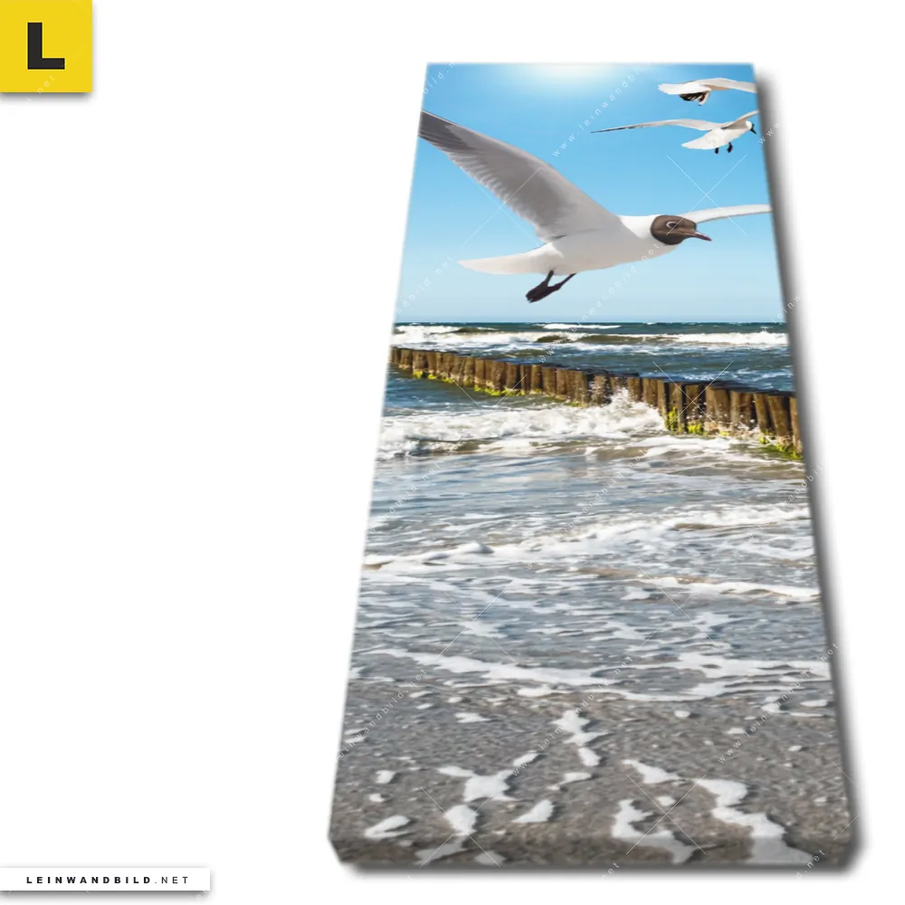 Du konfigurierst Dein individuelles Leinwandbild | Ostseeküste & Möwen | Schmal und wir produzieren es NEU für Dich. Unsere Strand - Meer, Landschaften Leinwände sind KEINE Lagerware. Du bist Dir unsicher, welches Motiv oder Format das richtige für dein individuelles Keilrahmenbild ist, dann helfen wir dir gerne weiter und beraten dich!
