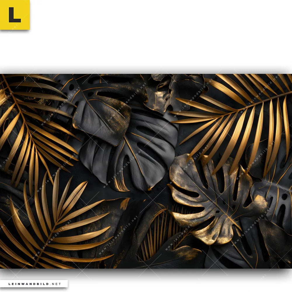 Leinwandbild | Palmenblätter Schwarz Gold | Querformat