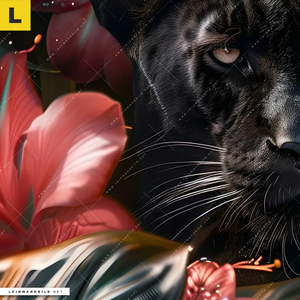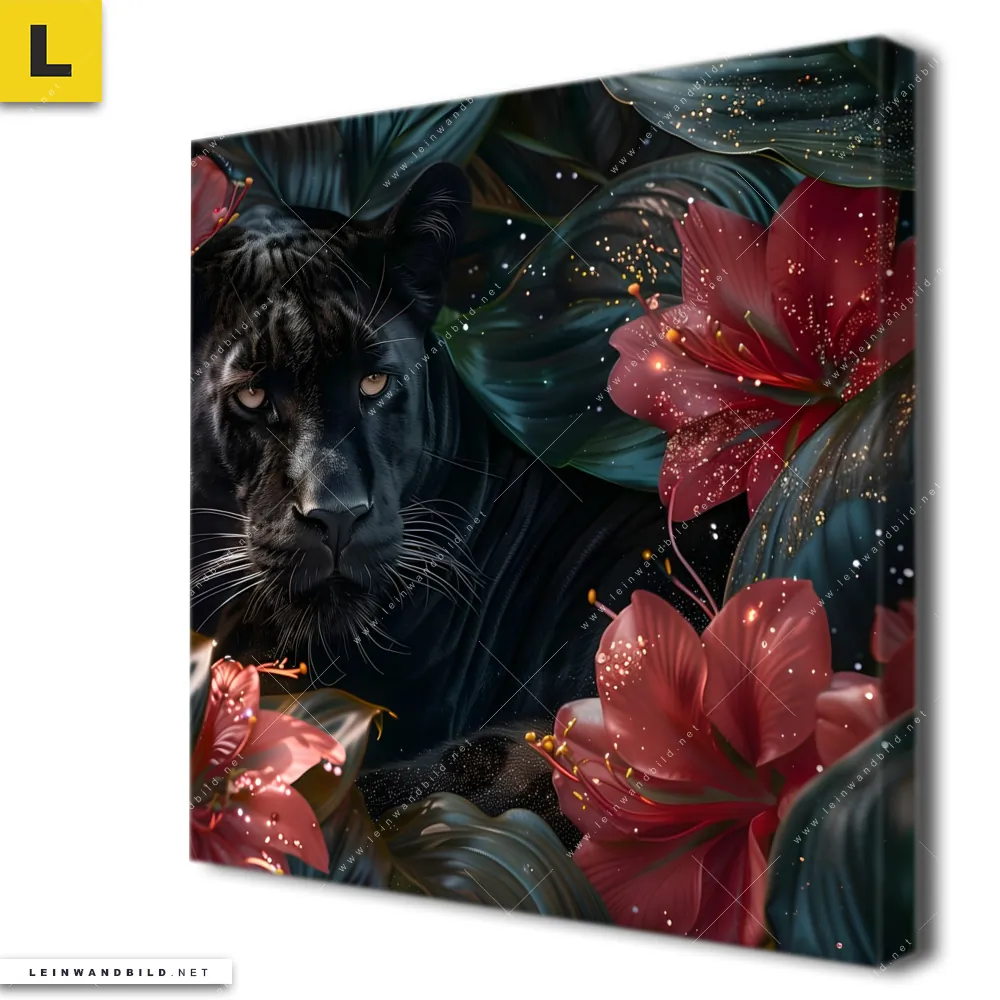 Du konfigurierst Dein individuelles Leinwandbild | Panther und rote Blüten | Quadrat und wir produzieren es NEU für Dich. Unsere Tierwelt, Blumen - Botanik Leinwände sind KEINE Lagerware. Du bist Dir unsicher, welches Motiv oder Format das richtige für dein individuelles Keilrahmenbild ist, dann helfen wir dir gerne weiter und beraten dich!