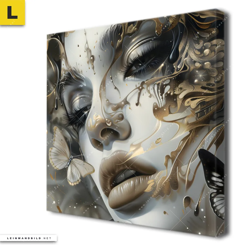 Du konfigurierst Dein individuelles Leinwandbild | Paola - Porträt mit Schmetterlingen | Quadrat und wir produzieren es NEU für Dich. Unsere Porträts - Menschen Leinwände sind KEINE Lagerware. Du bist Dir unsicher, welches Motiv oder Format das richtige für dein individuelles Keilrahmenbild ist, dann helfen wir dir gerne weiter und beraten dich!