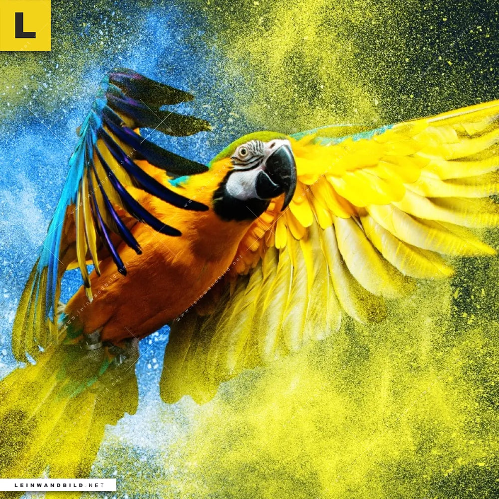 Du konfigurierst Dein individuelles Leinwandbild | Papagei - Farbexplosion | Querformat und wir produzieren es NEU für Dich. Unsere Tierwelt Leinwände sind KEINE Lagerware. Du bist Dir unsicher, welches Motiv oder Format das richtige für dein individuelles Keilrahmenbild ist, dann helfen wir dir gerne weiter und beraten dich!