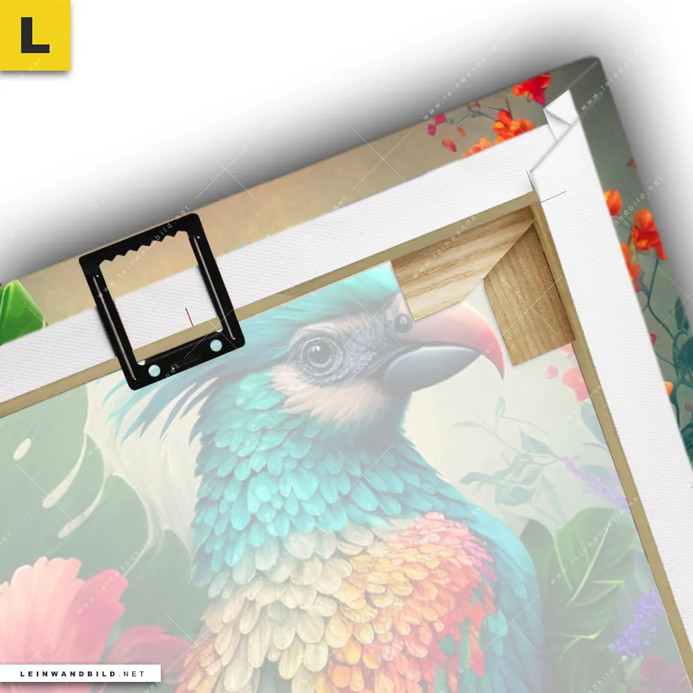 Du konfigurierst Dein individuelles Leinwandbild | Papagei und tropischer Hibiskus | Hochformat und wir produzieren es NEU für Dich. Unsere Tierwelt, Blumen - Botanik Leinwände sind KEINE Lagerware. Du bist Dir unsicher, welches Motiv oder Format das richtige für dein individuelles Keilrahmenbild ist, dann helfen wir dir gerne weiter und beraten dich!