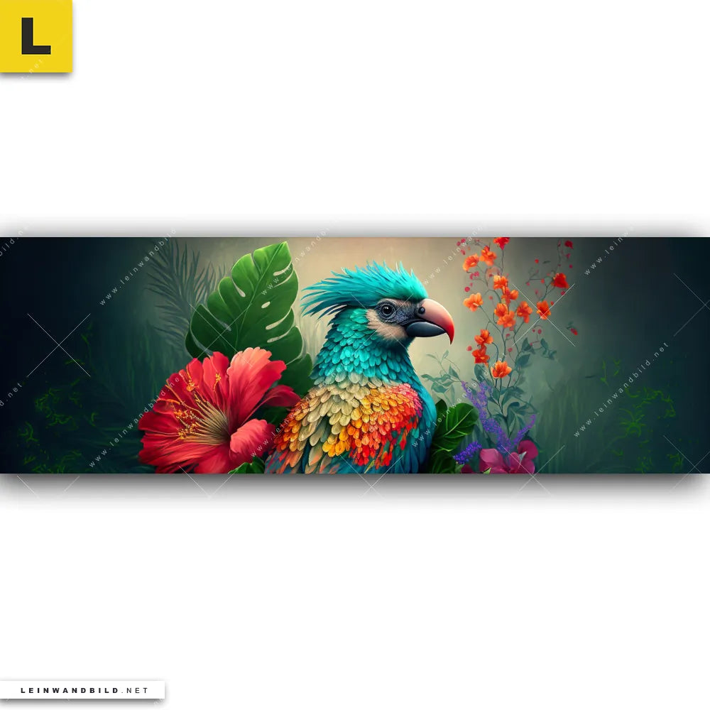 Du konfigurierst Dein individuelles Leinwandbild | Papagei und tropischer Hibiskus | Panorama und wir produzieren es NEU für Dich. Unsere Tierwelt, Blumen - Botanik Leinwände sind KEINE Lagerware. Du bist Dir unsicher, welches Motiv oder Format das richtige für dein individuelles Keilrahmenbild ist, dann helfen wir dir gerne weiter und beraten dich!
