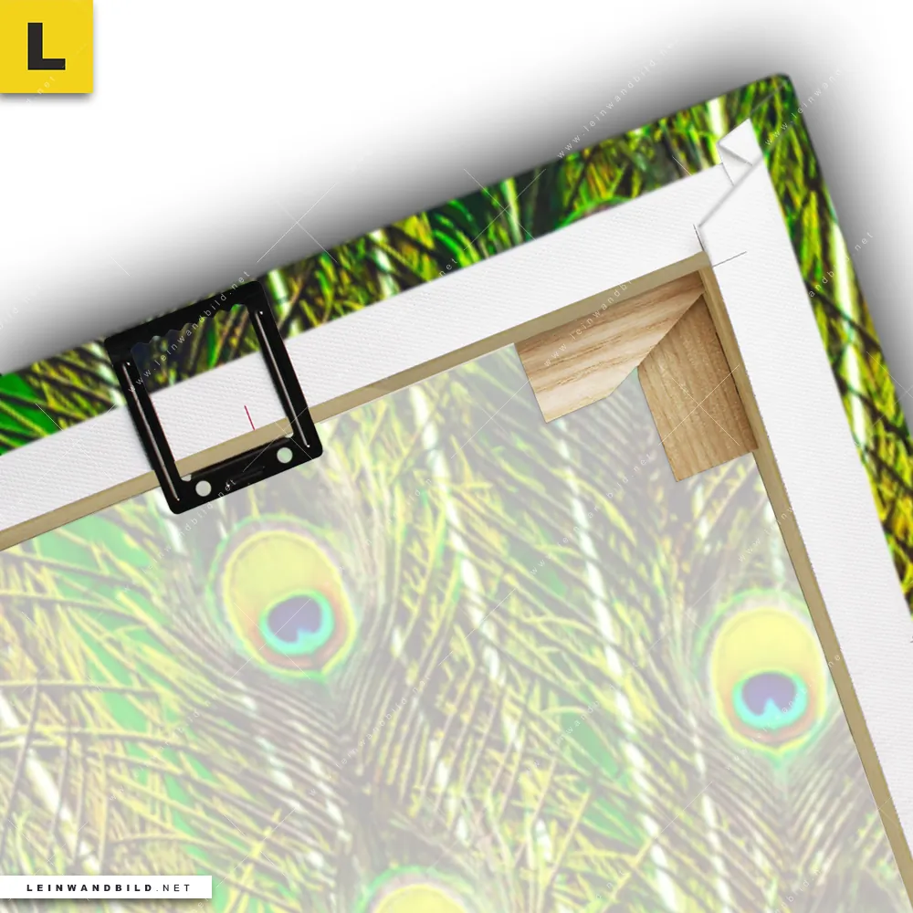 Du konfigurierst Dein individuelles Leinwandbild | Pfauenschwanz | Schmal und wir produzieren es NEU für Dich. Unsere Tierwelt Leinwände sind KEINE Lagerware. Du bist Dir unsicher, welches Motiv oder Format das richtige für dein individuelles Keilrahmenbild ist, dann helfen wir dir gerne weiter und beraten dich!