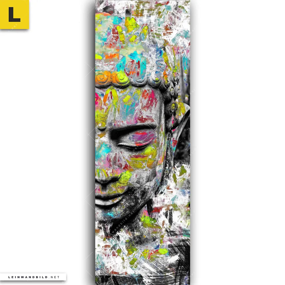 Du konfigurierst Dein individuelles Leinwandbild | Pop Art Buddha Kopf | Schmal und wir produzieren es NEU für Dich. Unsere Buddha - Feng Shui Leinwände sind KEINE Lagerware. Du bist Dir unsicher, welches Motiv oder Format das richtige für dein individuelles Keilrahmenbild ist, dann helfen wir dir gerne weiter und beraten dich!