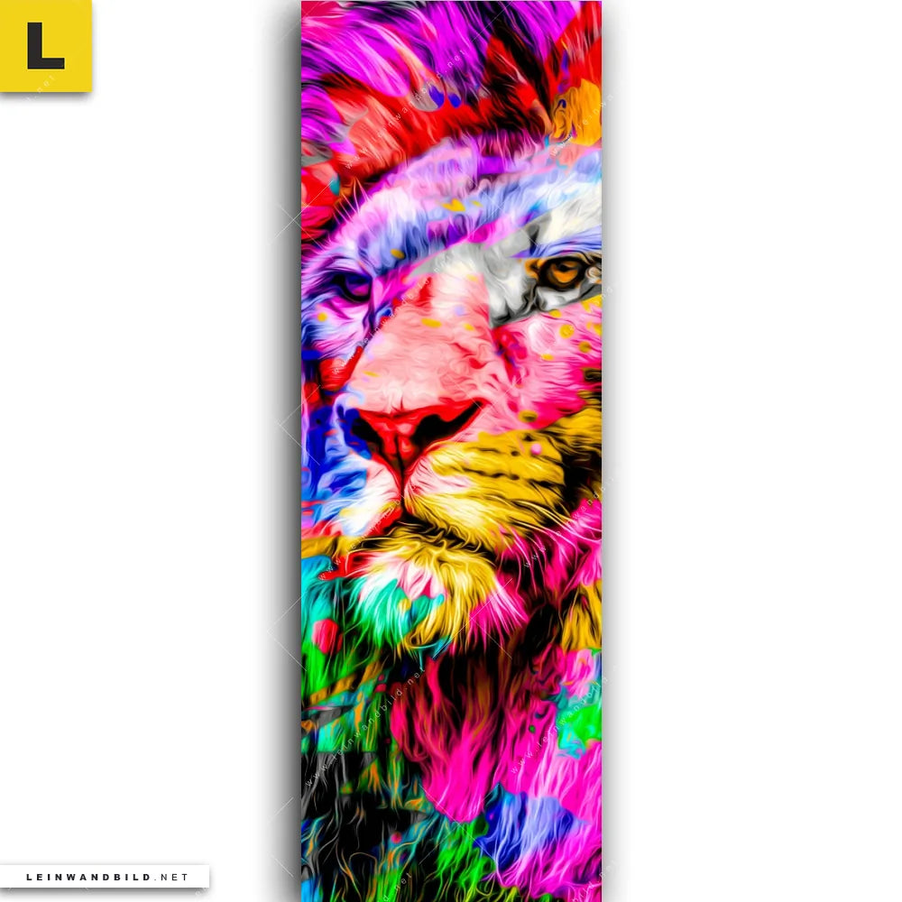 Du konfigurierst Dein individuelles Leinwandbild | Pop Art Löwe | Schmal und wir produzieren es NEU für Dich. Unsere Tierwelt Leinwände sind KEINE Lagerware. Du bist Dir unsicher, welches Motiv oder Format das richtige für dein individuelles Keilrahmenbild ist, dann helfen wir dir gerne weiter und beraten dich!