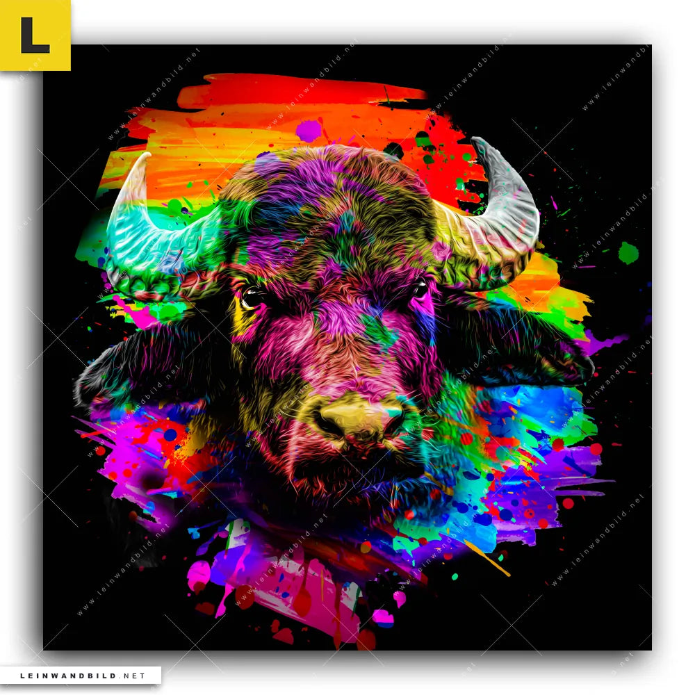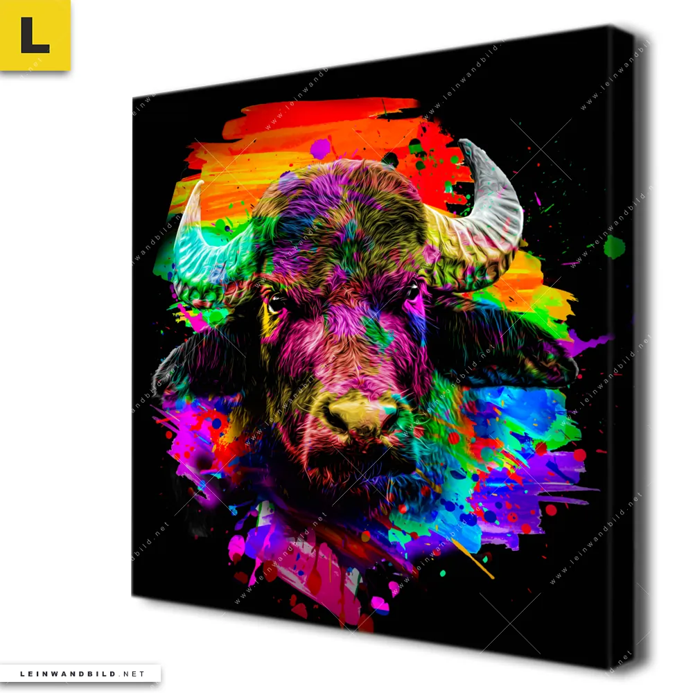 Du konfigurierst Dein individuelles Leinwandbild | Pop Art Stier | Quadrat und wir produzieren es NEU für Dich. Unsere Tierwelt Leinwände sind KEINE Lagerware. Du bist Dir unsicher, welches Motiv oder Format das richtige für dein individuelles Keilrahmenbild ist, dann helfen wir dir gerne weiter und beraten dich!