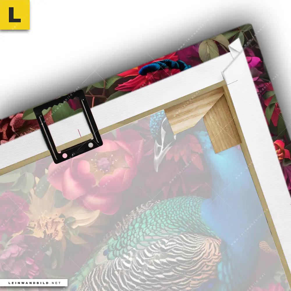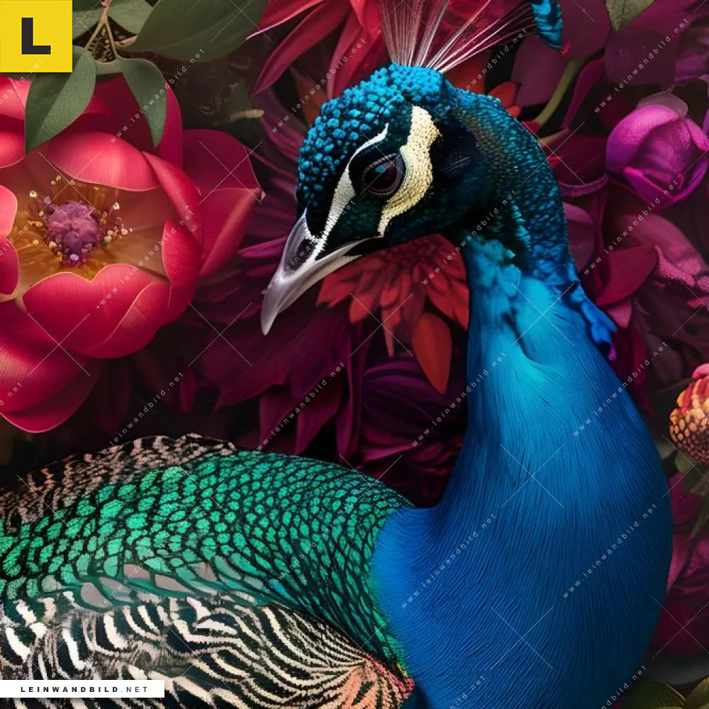 Du konfigurierst Dein individuelles Leinwandbild | Prachtvoller Pfau und Blüten | Quadrat und wir produzieren es NEU für Dich. Unsere Tierwelt, Blumen - Botanik Leinwände sind KEINE Lagerware. Du bist Dir unsicher, welches Motiv oder Format das richtige für dein individuelles Keilrahmenbild ist, dann helfen wir dir gerne weiter und beraten dich!