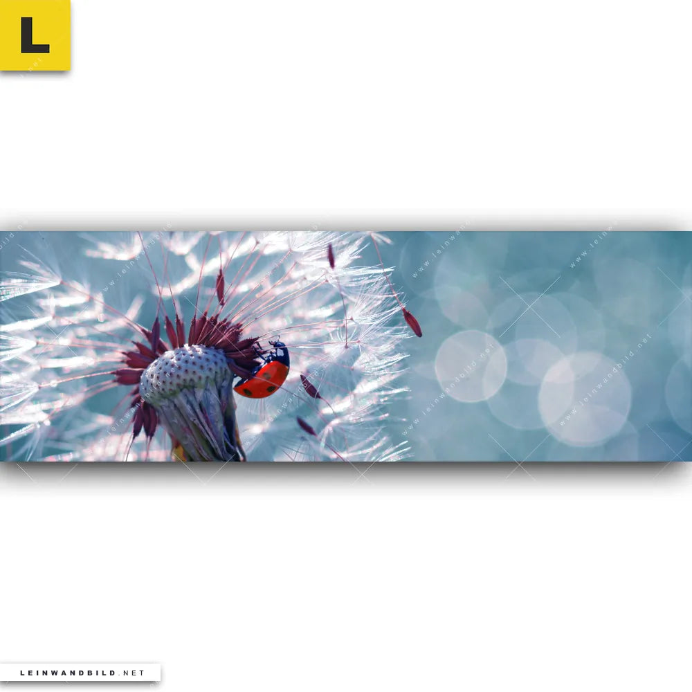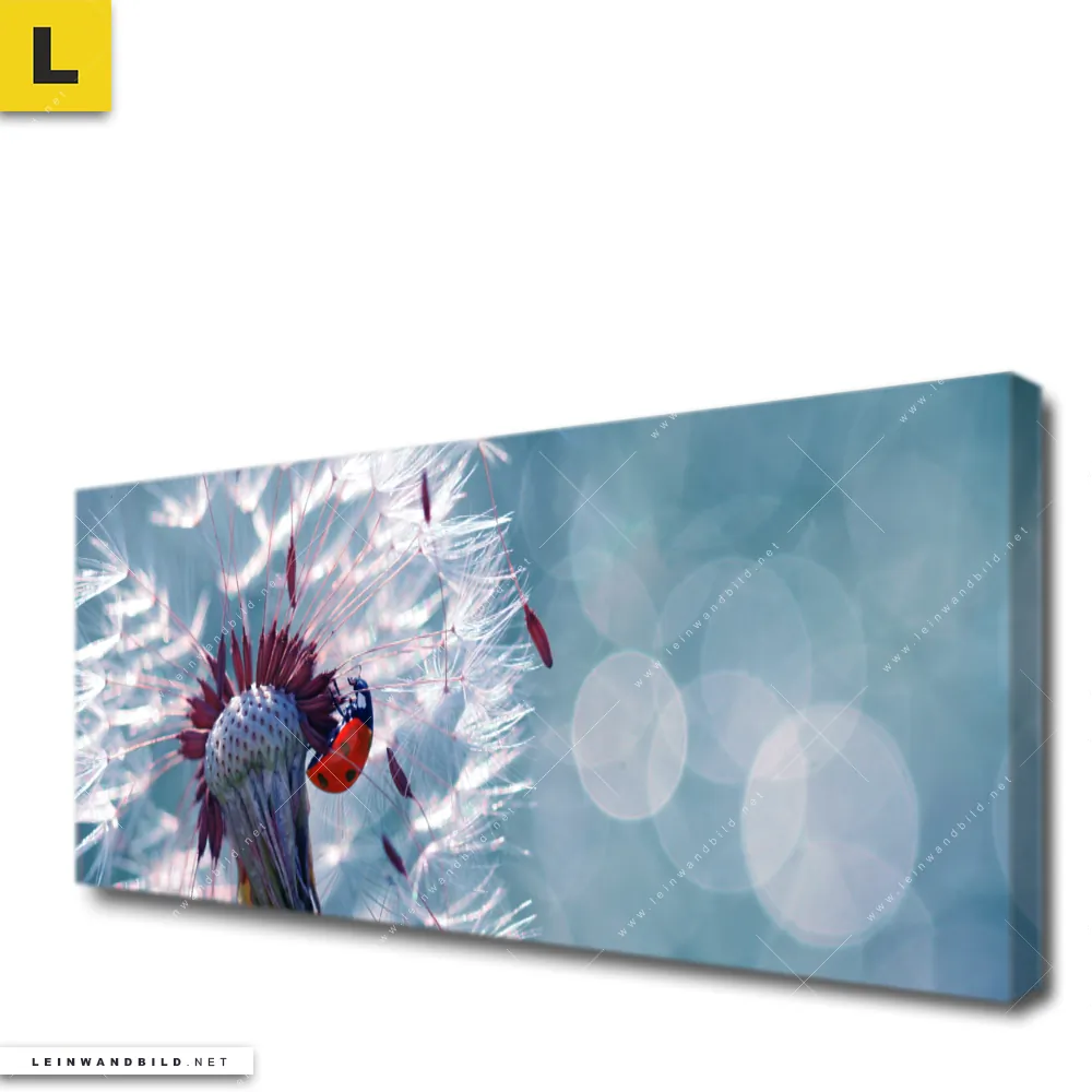 Du konfigurierst Dein individuelles Leinwandbild | Pusteblume & Marienkäfer | Panorama und wir produzieren es NEU für Dich. Unsere Blumen - Botanik, Tierwelt Leinwände sind KEINE Lagerware. Du bist Dir unsicher, welches Motiv oder Format das richtige für dein individuelles Keilrahmenbild ist, dann helfen wir dir gerne weiter und beraten dich!