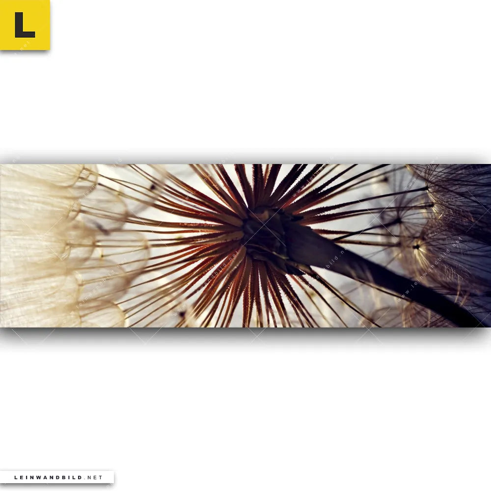 Du konfigurierst Dein individuelles Leinwandbild | Pusteblume | Panorama und wir produzieren es NEU für Dich. Unsere Blumen - Botanik Leinwände sind KEINE Lagerware. Du bist Dir unsicher, welches Motiv oder Format das richtige für dein individuelles Keilrahmenbild ist, dann helfen wir dir gerne weiter und beraten dich!
