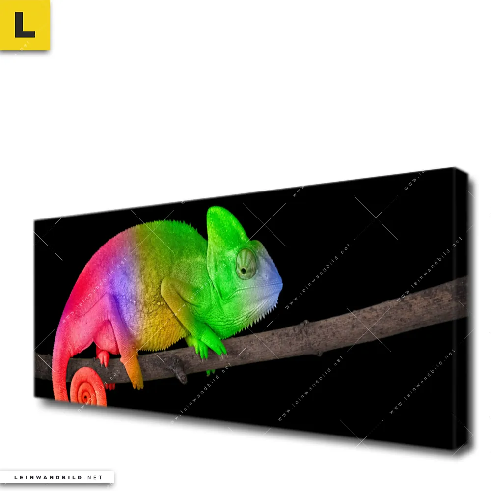 Du konfigurierst Dein individuelles Leinwandbild | Regenbogen Chamäleon | Panorama und wir produzieren es NEU für Dich. Unsere Tierwelt Leinwände sind KEINE Lagerware. Du bist Dir unsicher, welches Motiv oder Format das richtige für dein individuelles Keilrahmenbild ist, dann helfen wir dir gerne weiter und beraten dich!