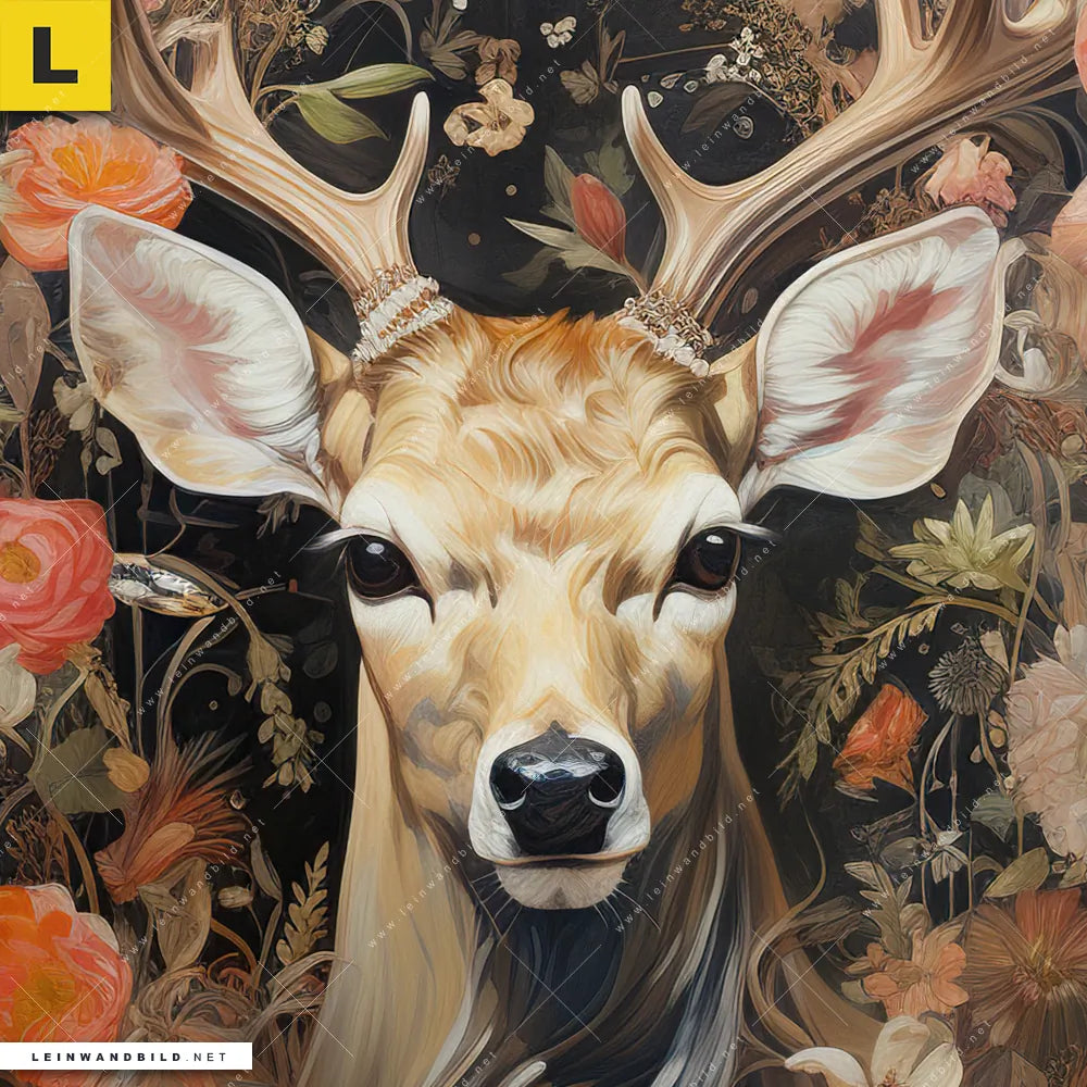 Du konfigurierst Dein individuelles Leinwandbild | Reh Blumen | Schmal und wir produzieren es NEU für Dich. Unsere Tierwelt, Blumen - Botanik Leinwände sind KEINE Lagerware. Du bist Dir unsicher, welches Motiv oder Format das richtige für dein individuelles Keilrahmenbild ist, dann helfen wir dir gerne weiter und beraten dich!