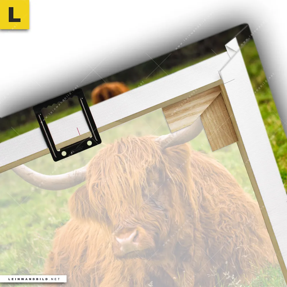Du konfigurierst Dein individuelles Leinwandbild | Rind in den schottischen Highlands | Querformat und wir produzieren es NEU für Dich. Unsere Tierwelt Leinwände sind KEINE Lagerware. Du bist Dir unsicher, welches Motiv oder Format das richtige für dein individuelles Keilrahmenbild ist, dann helfen wir dir gerne weiter und beraten dich!
