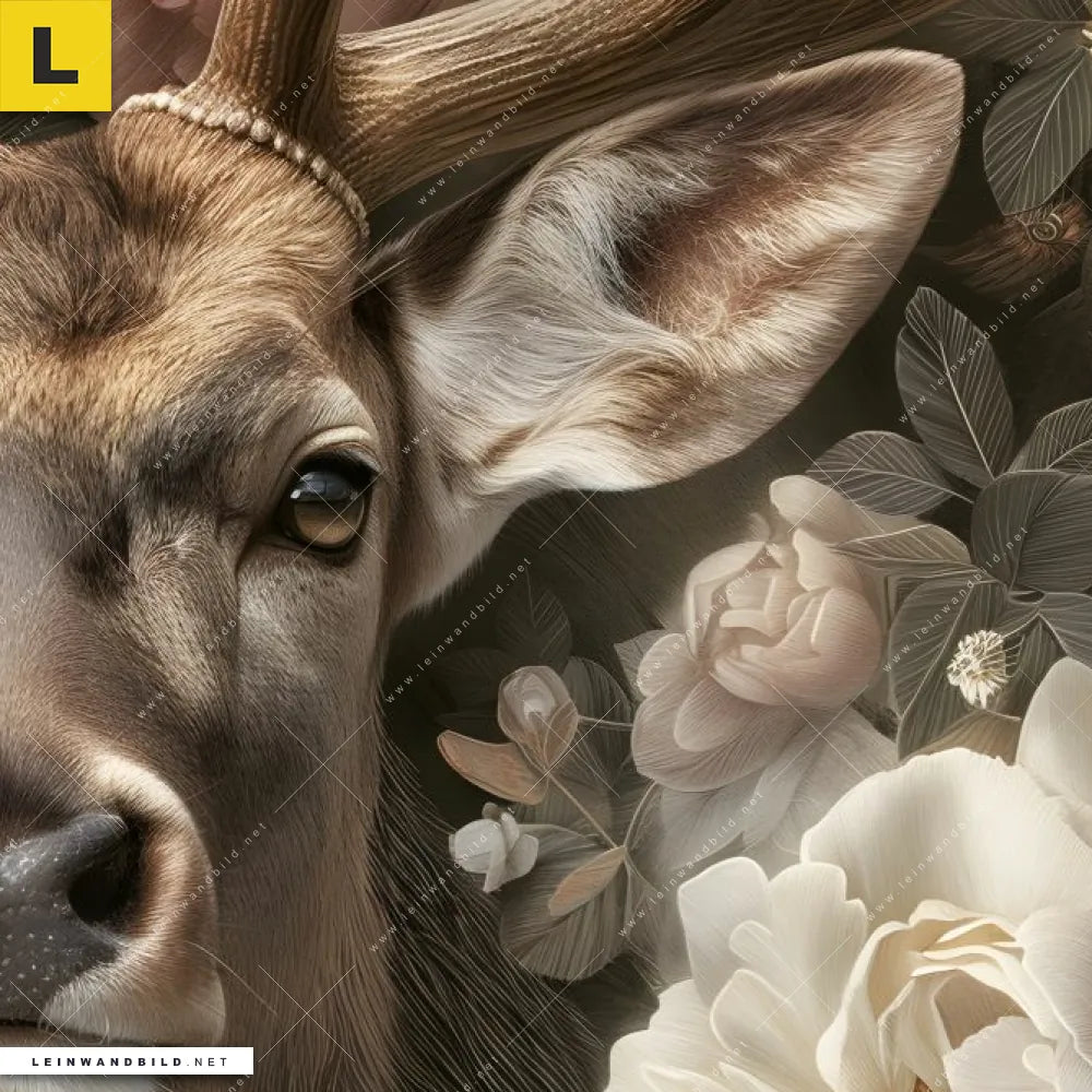 Bitte beachte, dass die Farben, der auf dem Monitor abgebildeten Romantisches Hirschporträt mit Blumen Darstellung, möglicherweise von den Originalfarben abweichen können.