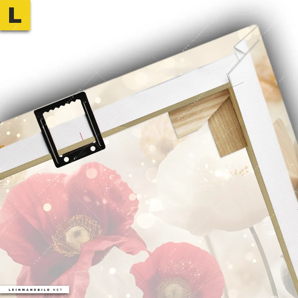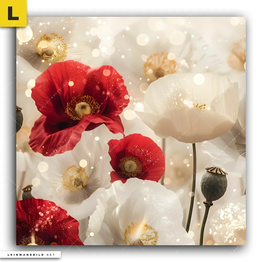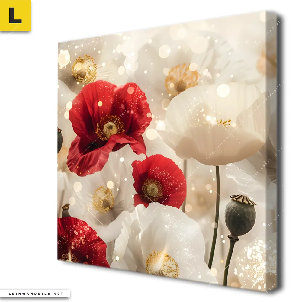 Du konfigurierst Dein individuelles Leinwandbild | Rote und weiße Mohnblumen | Quadrat und wir produzieren es NEU für Dich. Unsere Blumen - Botanik Leinwände sind KEINE Lagerware. Du bist Dir unsicher, welches Motiv oder Format das richtige für dein individuelles Keilrahmenbild ist, dann helfen wir dir gerne weiter und beraten dich!