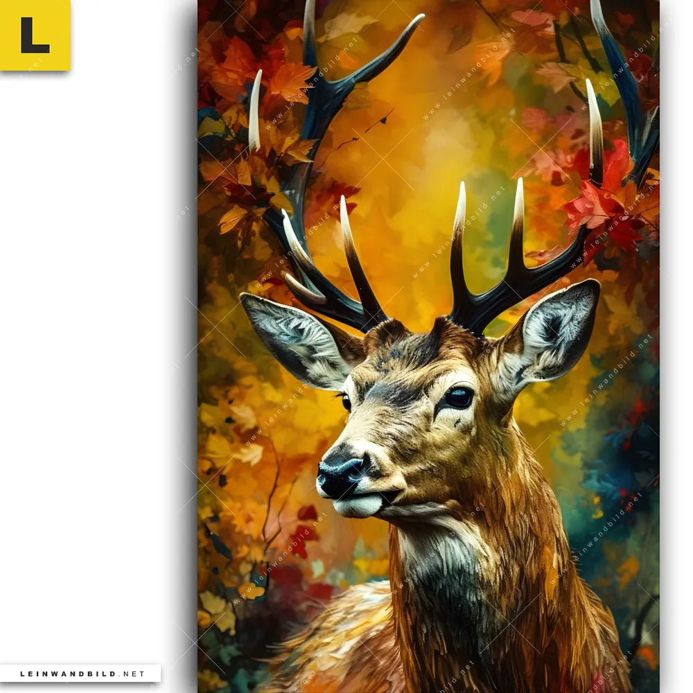 Leinwandbild | Rothirsch im Herbstwald | Hochformat