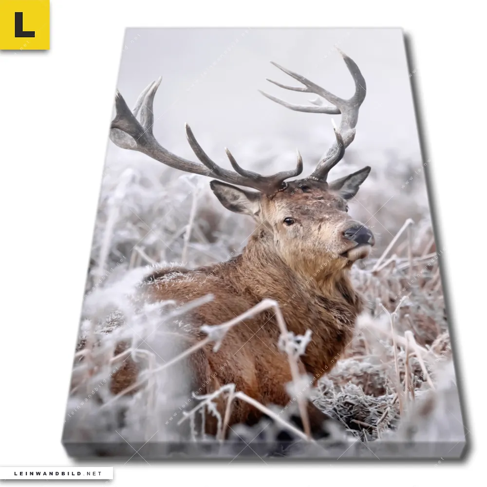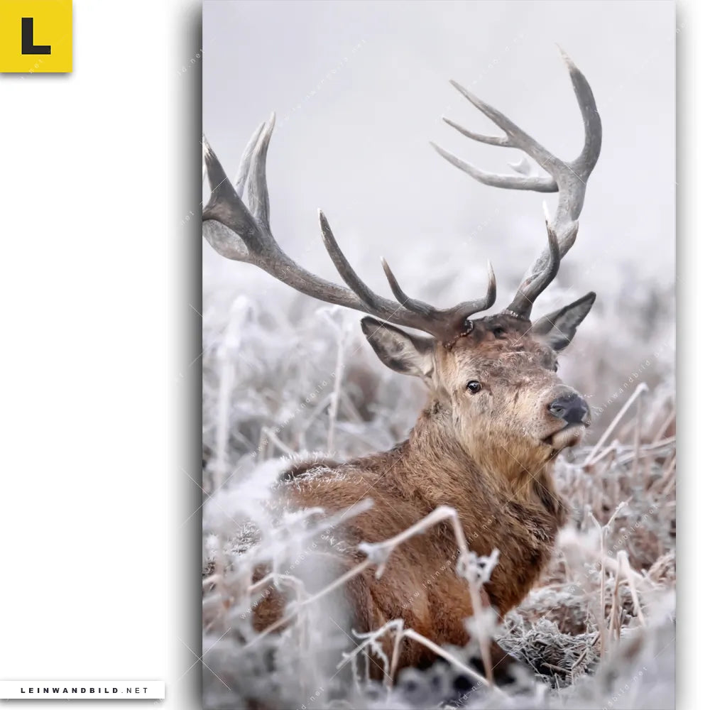 Leinwandbild | Rothirsch im Winter | Hochformat