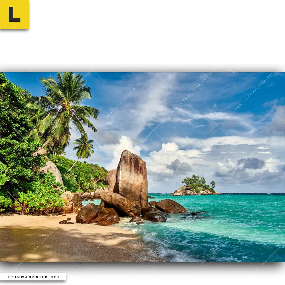 Dann sollte das Leinwandbild | Schöner Strand mit Palmen | Querformat den Weg zu Dir finden. Die moderne Fotoleinwand Felsen auf den Seychellen fügt sich als Eye-Catcher harmonisch in jedes Arzt - Praxis, Wohnzimmer - Schlafzimmer, Büro - Kanzlei Raumkonzept ein.