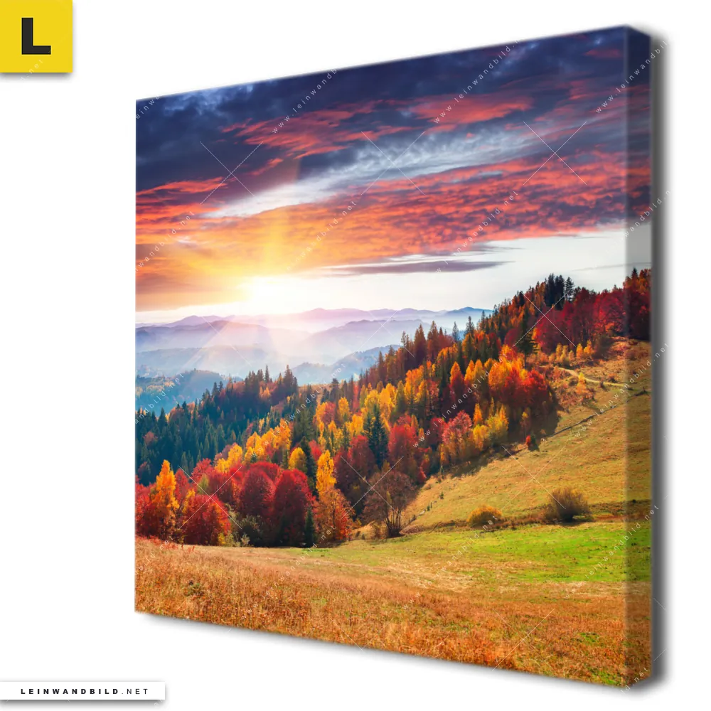 Bitte beachte, dass die Farben, der auf dem Monitor abgebildeten Herbstwald mit farbenprächtigem Himmel Darstellung, möglicherweise von den Originalfarben abweichen können.