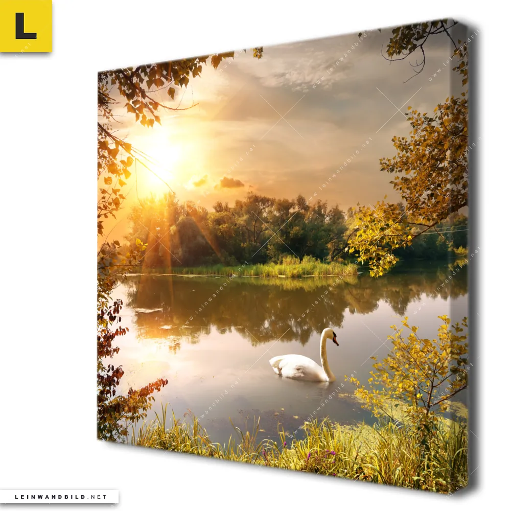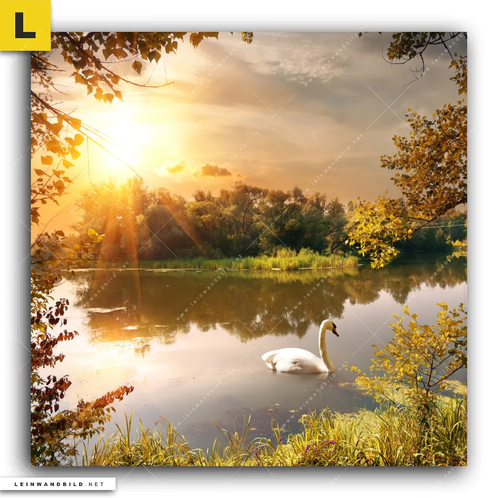 Bitte beachte, dass die Farben, der auf dem Monitor abgebildeten See mit Schwan bei Morgensonne Darstellung, möglicherweise von den Originalfarben abweichen können.