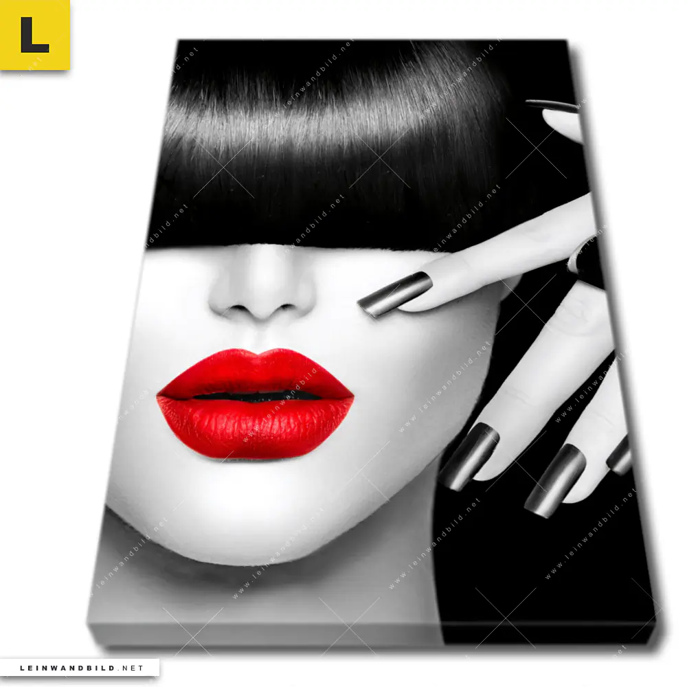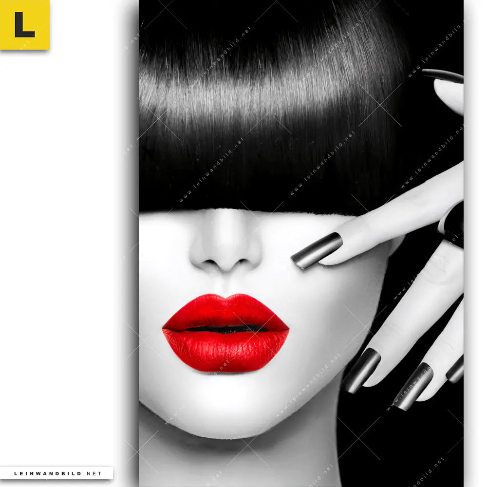 Du konfigurierst Dein individuelles Leinwandbild | Schwarze Eleganz & rote Lippen | Hochformat und wir produzieren es NEU für Dich. Unsere Porträts - Menschen Leinwände sind KEINE Lagerware. Du bist Dir unsicher, welches Motiv oder Format das richtige für dein individuelles Keilrahmenbild ist, dann helfen wir dir gerne weiter und beraten dich!