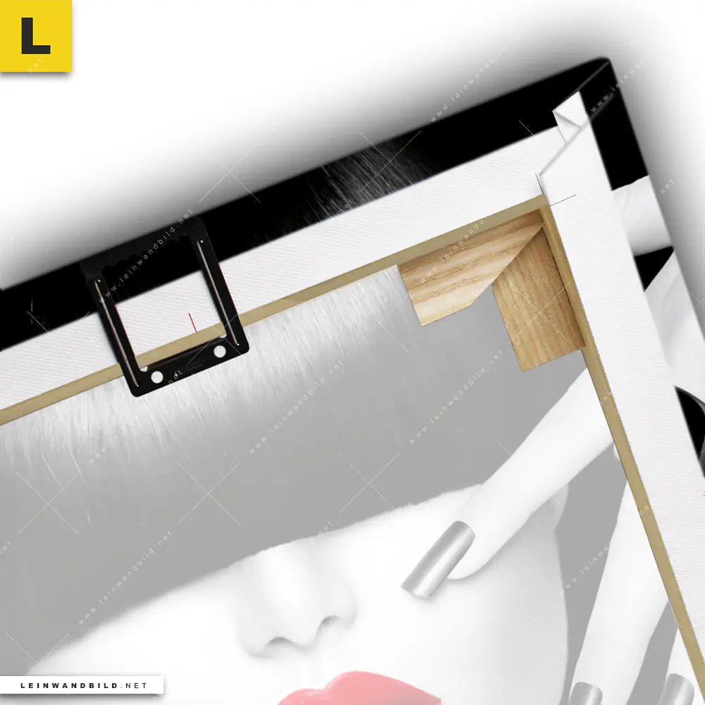 Begriffe wie Frau, Lippen, Mund, Porträt, modern, Beauty, Schönheit, Mädchen haben Dich auf der Suche nach Deinem neuen Wandbild auf Leinwand inspiriert? Dann sollte das Leinwandbild Glamour pur in Schwarz-Weiß den Weg zu Dir finden.