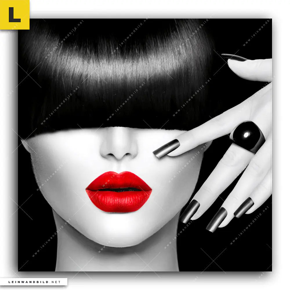 Du bist auf der Suche nach einem XXL Porträts - Menschen Leinwandbild und Begriffe wie Frau, Lippen, Mund, Porträt, modern, Beauty, Schönheit, Mädchen haben Dich auf der Suche nach Deinem neuen Quadratischen Wandbild auf Leinwand inspiriert? Farben wie Schwarz, Weiss, Rot dürfen auf Deinem neuen Keilrahmenbild nicht fehlen und Leinwände im Modern Art, Schwarz - Weiss Stil passen perfekt zu Deinem Einrichtungsstil?
