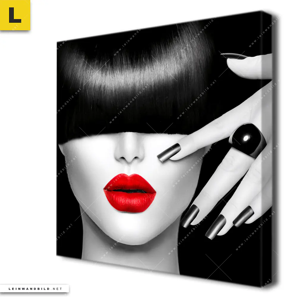 Du konfigurierst Dein individuelles Leinwandbild | Schwarze Eleganz & rote Lippen | Quadrat und wir produzieren es NEU für Dich. Unsere Porträts - Menschen Leinwände sind KEINE Lagerware. Du bist Dir unsicher, welches Motiv oder Format das richtige für dein individuelles Keilrahmenbild ist, dann helfen wir dir gerne weiter und beraten dich!