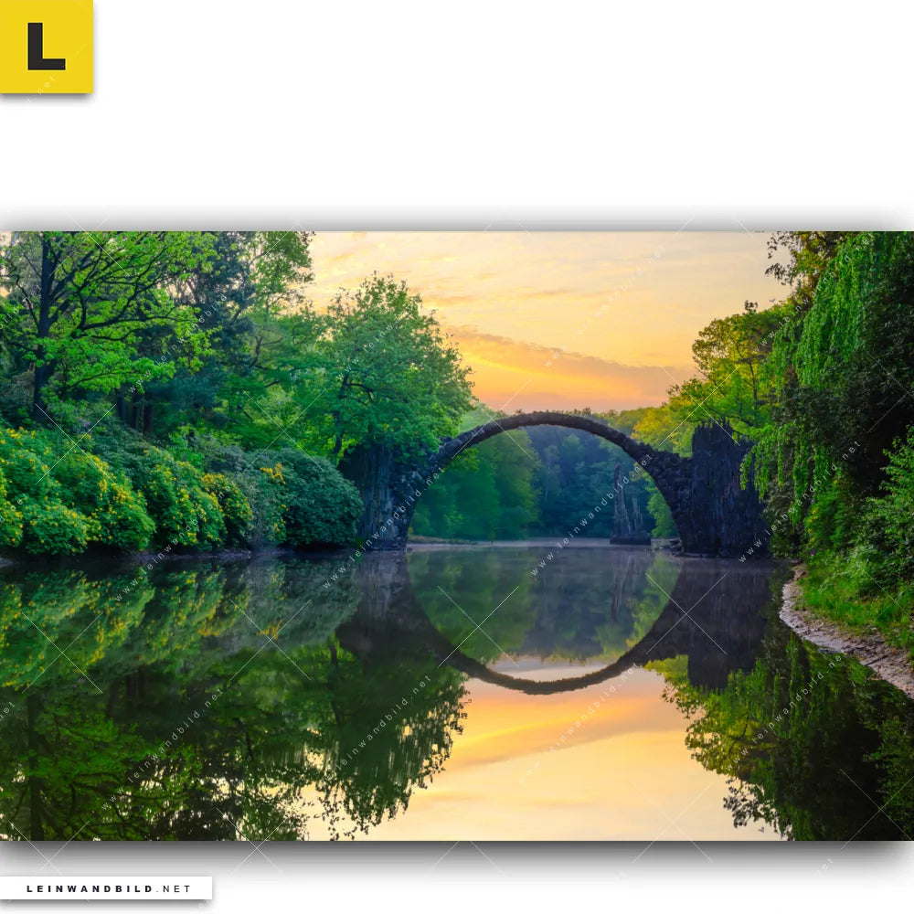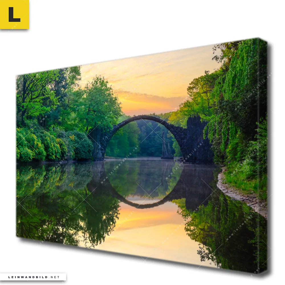 Leinwandbild | See mit alter Brücke aus Stein | Querformat