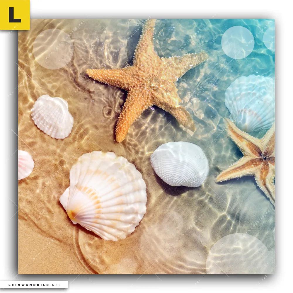 Du konfigurierst Dein individuelles Leinwandbild | Seesterne & Muscheln | Quadrat und wir produzieren es NEU für Dich. Unsere Strand - Meer Leinwände sind KEINE Lagerware. Du bist Dir unsicher, welches Motiv oder Format das richtige für dein individuelles Keilrahmenbild ist, dann helfen wir dir gerne weiter und beraten dich!