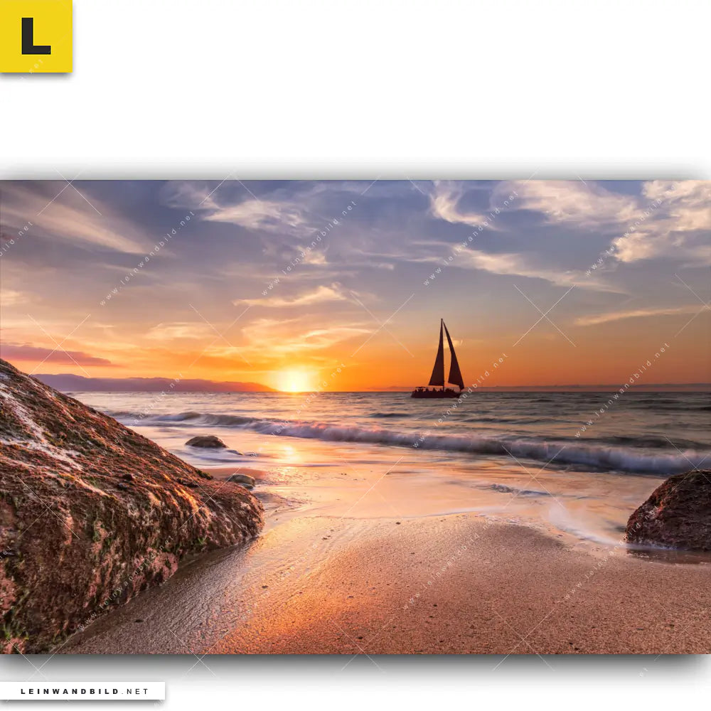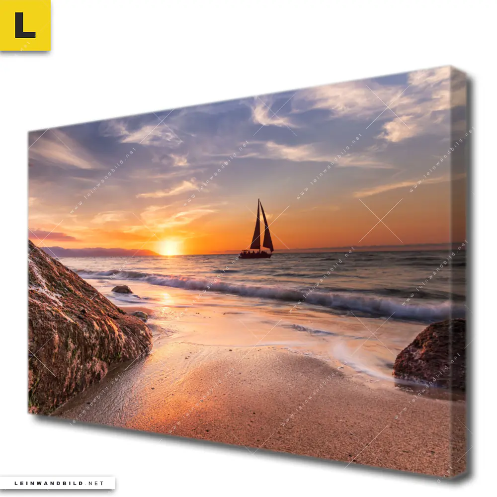 Du konfigurierst Dein individuelles Leinwandbild | Segelboot im Sonnenuntergang | Querformat und wir produzieren es NEU für Dich. Unsere Landschaften, Strand - Meer Leinwände sind KEINE Lagerware. Du bist Dir unsicher, welches Motiv oder Format das richtige für dein individuelles Keilrahmenbild ist, dann helfen wir dir gerne weiter und beraten dich!