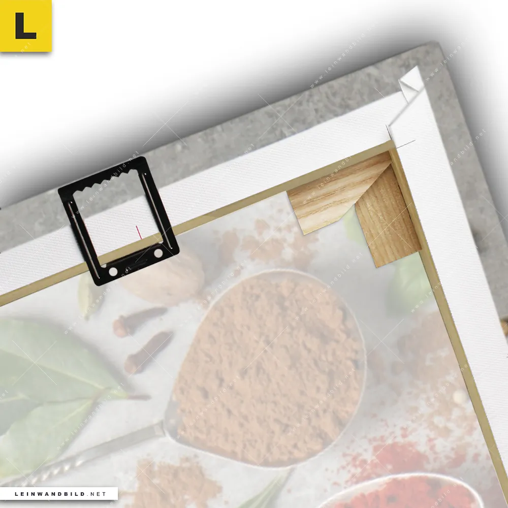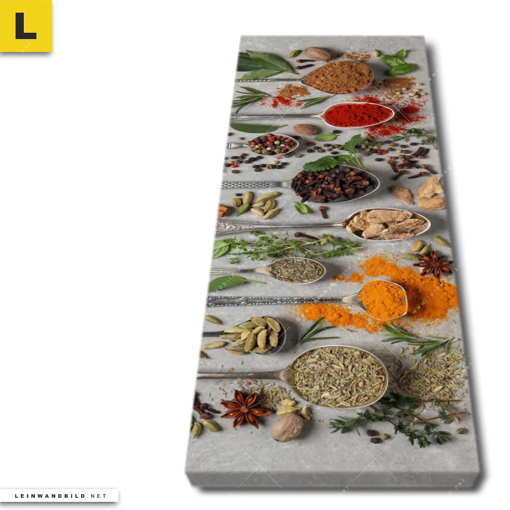 Du konfigurierst Dein individuelles Leinwandbild | Silberlöffel mit Gewürzen | Schmal und wir produzieren es NEU für Dich. Unsere Essen - Trinken Leinwände sind KEINE Lagerware. Du bist Dir unsicher, welches Motiv oder Format das richtige für dein individuelles Keilrahmenbild ist, dann helfen wir dir gerne weiter und beraten dich!