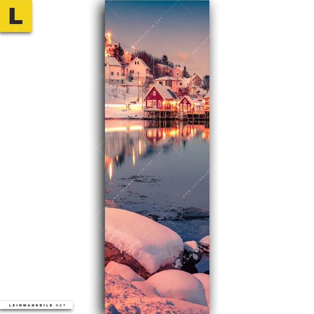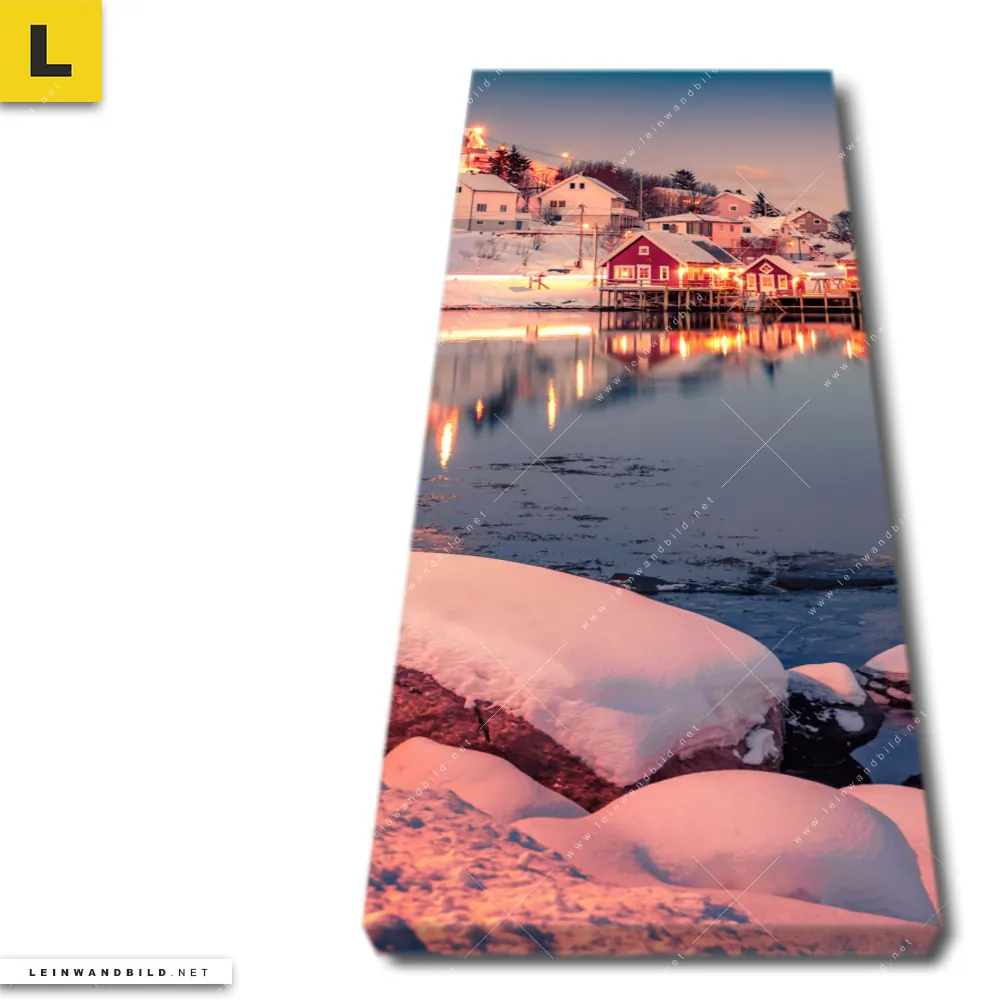 Du konfigurierst Dein individuelles Leinwandbild | Skandinavische Stadt bei Nacht | Schmal und wir produzieren es NEU für Dich. Unsere Landschaften, Städte - Skylines Leinwände sind KEINE Lagerware. Du bist Dir unsicher, welches Motiv oder Format das richtige für dein individuelles Keilrahmenbild ist, dann helfen wir dir gerne weiter und beraten dich!
