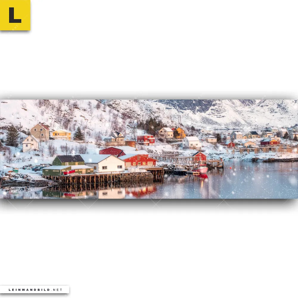 Du konfigurierst Dein individuelles Leinwandbild | Skandinavisches Dorf im Schnee | Panorama und wir produzieren es NEU für Dich. Unsere Landschaften, Städte - Skylines Leinwände sind KEINE Lagerware. Du bist Dir unsicher, welches Motiv oder Format das richtige für dein individuelles Keilrahmenbild ist, dann helfen wir dir gerne weiter und beraten dich!