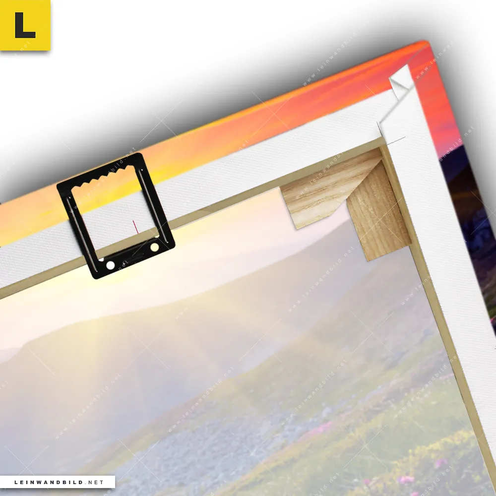 Du konfigurierst Dein individuelles Leinwandbild | Sommerberg im Sonnenuntergang | Panorama und wir produzieren es NEU für Dich. Unsere Landschaften Leinwände sind KEINE Lagerware. Du bist Dir unsicher, welches Motiv oder Format das richtige für dein individuelles Keilrahmenbild ist, dann helfen wir dir gerne weiter und beraten dich!