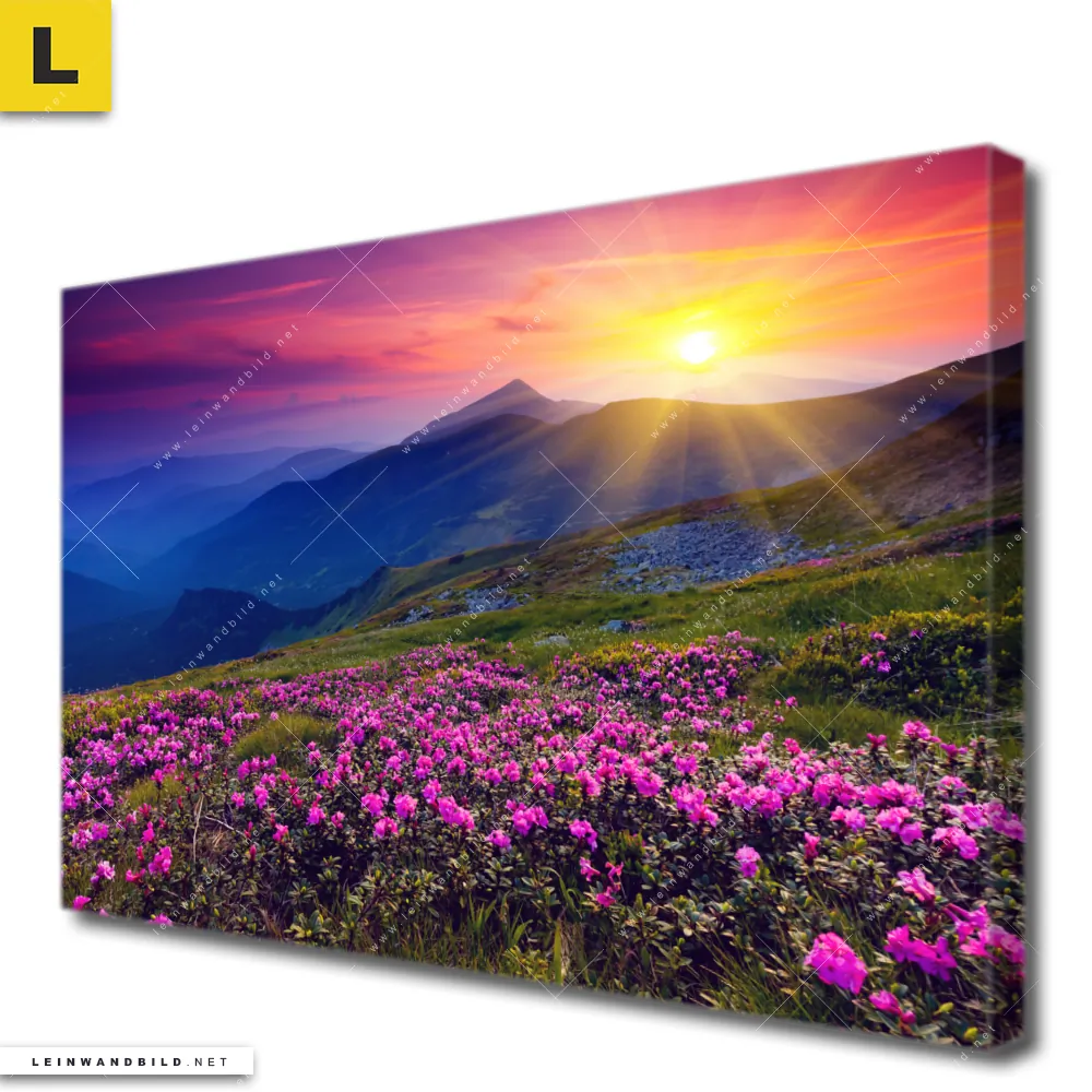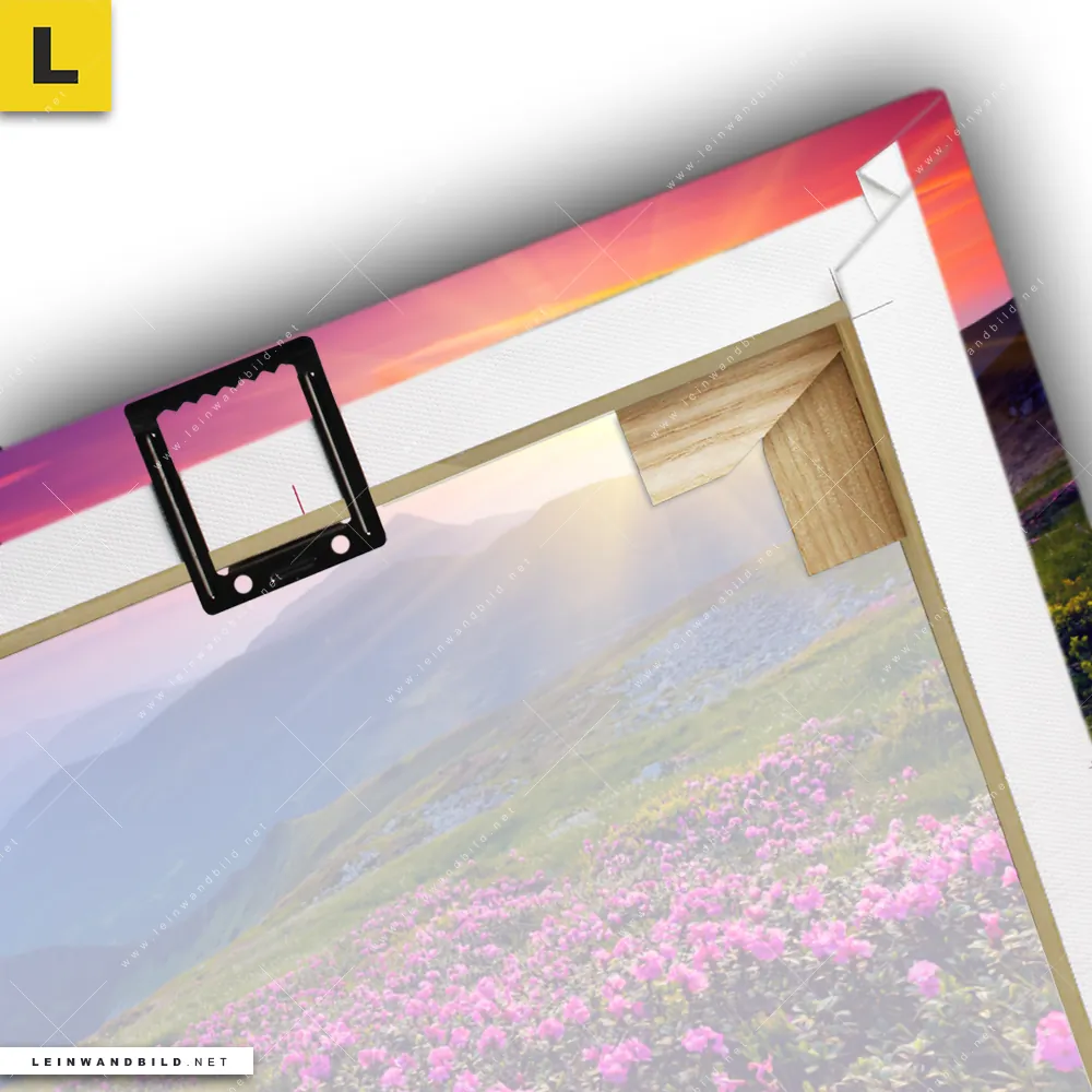 Du konfigurierst Dein individuelles Leinwandbild | Sommerberg im Sonnenuntergang | Querformat und wir produzieren es NEU für Dich. Unsere Landschaften Leinwände sind KEINE Lagerware. Du bist Dir unsicher, welches Motiv oder Format das richtige für dein individuelles Keilrahmenbild ist, dann helfen wir dir gerne weiter und beraten dich!