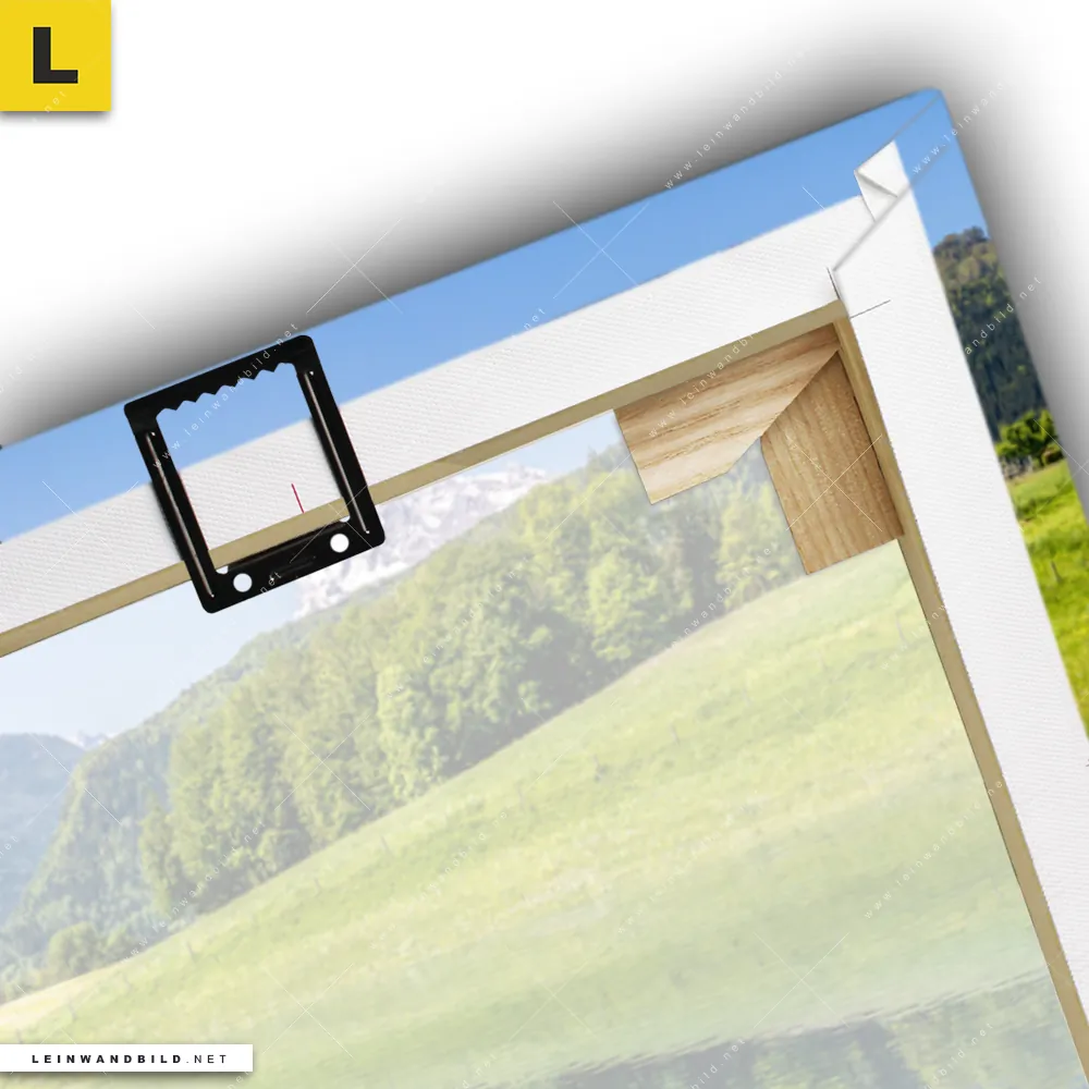 Du konfigurierst Dein individuelles Leinwandbild | Sommerlandschaft in den Alpen | Panorama und wir produzieren es NEU für Dich. Unsere Landschaften Leinwände sind KEINE Lagerware. Du bist Dir unsicher, welches Motiv oder Format das richtige für dein individuelles Keilrahmenbild ist, dann helfen wir dir gerne weiter und beraten dich!