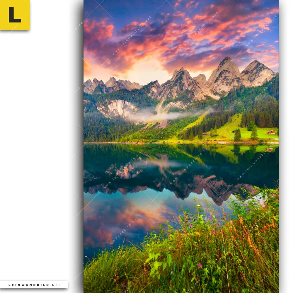 Leinwandbild | Sonnenaufgang am Bergsee | Hochformat