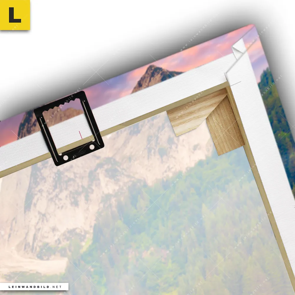 Du konfigurierst Dein individuelles Leinwandbild | Sonnenaufgang am Bergsee | Panorama und wir produzieren es NEU für Dich. Unsere Landschaften Leinwände sind KEINE Lagerware. Du bist Dir unsicher, welches Motiv oder Format das richtige für dein individuelles Keilrahmenbild ist, dann helfen wir dir gerne weiter und beraten dich!