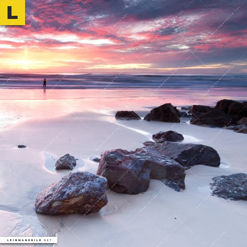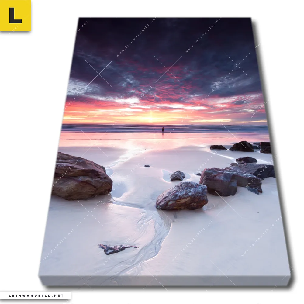 Du konfigurierst Dein individuelles Leinwandbild | Sonnenaufgang am Strand mit Felsen | Hochformat und wir produzieren es NEU für Dich. Unsere Landschaften, Strand - Meer Leinwände sind KEINE Lagerware. Du bist Dir unsicher, welches Motiv oder Format das richtige für dein individuelles Keilrahmenbild ist, dann helfen wir dir gerne weiter und beraten dich!