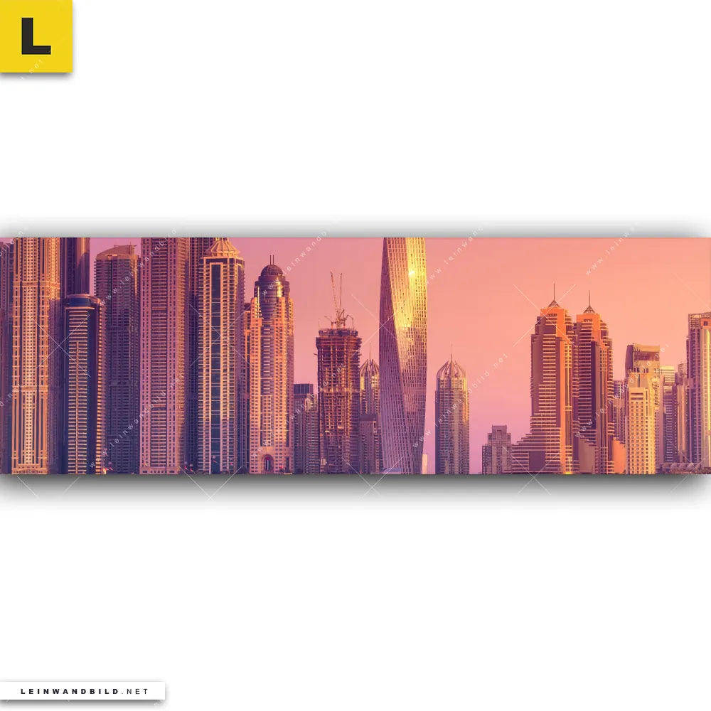 Du konfigurierst Dein individuelles Leinwandbild | Sonnenaufgang in Dubai | Panorama und wir produzieren es NEU für Dich. Unsere Architektur - Gebäude, Städte - Skylines Leinwände sind KEINE Lagerware. Du bist Dir unsicher, welches Motiv oder Format das richtige für dein individuelles Keilrahmenbild ist, dann helfen wir dir gerne weiter und beraten dich!